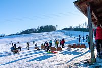 To už se ale blížím ke Zborovu, kde si chci prohlédnout nejen mumraj na lyžařském svahu, ale i dobýt tamní vrchol. Na Háječku mají dva talířové vleky, střídavě jede jeden vlek, ale když je větší fronta, pustí se i druhý a ta fronta občas i je. V oblsužné budově je i malé posezení s bufetem, kde si dopřejí též malé posilnění (káva, čaj, oplatky, sušenky, lahváče, limonády, párky apod.)