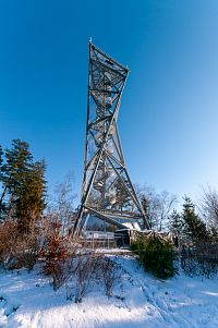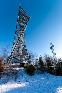 Vstup na rozhlednu se platí, ale je to přes automat, dá se tak za hotové, ale i kartou, takže kdo nemá drobné nevadí. Vlastně jsem na Háječku ještě nebyl, tak si užívám kruhovému výhledu do všech stran. Trošku mě zdržela i beseda s místním správcem rozhledny, který mě upozornil na pár zajímavostí, co by mělo být vidět (no na Háječku už jsem párkrát byl, tak těch neznámých moc není). Ale po slezení mě pan kolega obšťastnil i douškem s placaté lahvičky, takže to zdržení moc nevadilo. Původně jsem totiž přemýšlel ještě na pokračování někam pod kopec, ale pohled na hodinky věstil pokročilou dobu. Naštěstí máme chytré telefony, tak by mě mělo ze Zborova i něco jet. V bufetu mi slibují, že je otevřeno až do pěti (17.00), to znamená, že nemusím někde mrznout a bus(y) byť s malým zpožděním a jedním přestupem dorazil ke kýženému cíli.