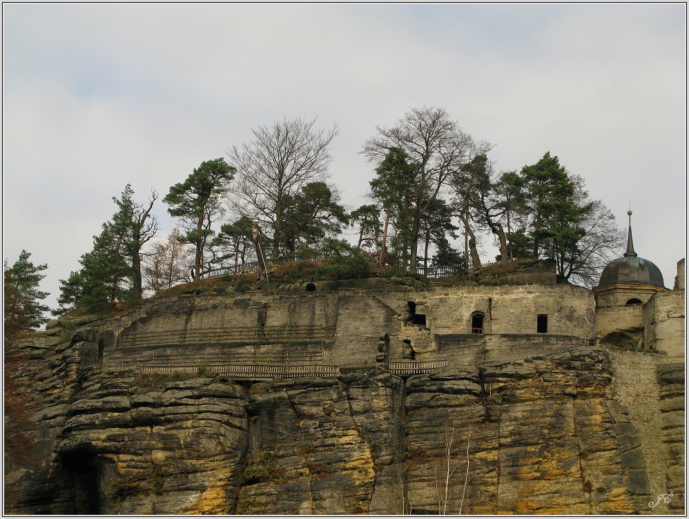 Opustíme červenou a jdeme tzv. Hraběcí cestou po místní zelené značce. Cesta je pohodlná, vede řídkým lesem, občas mezi skalami, občas s výhledem (foto 10 a 11). |
