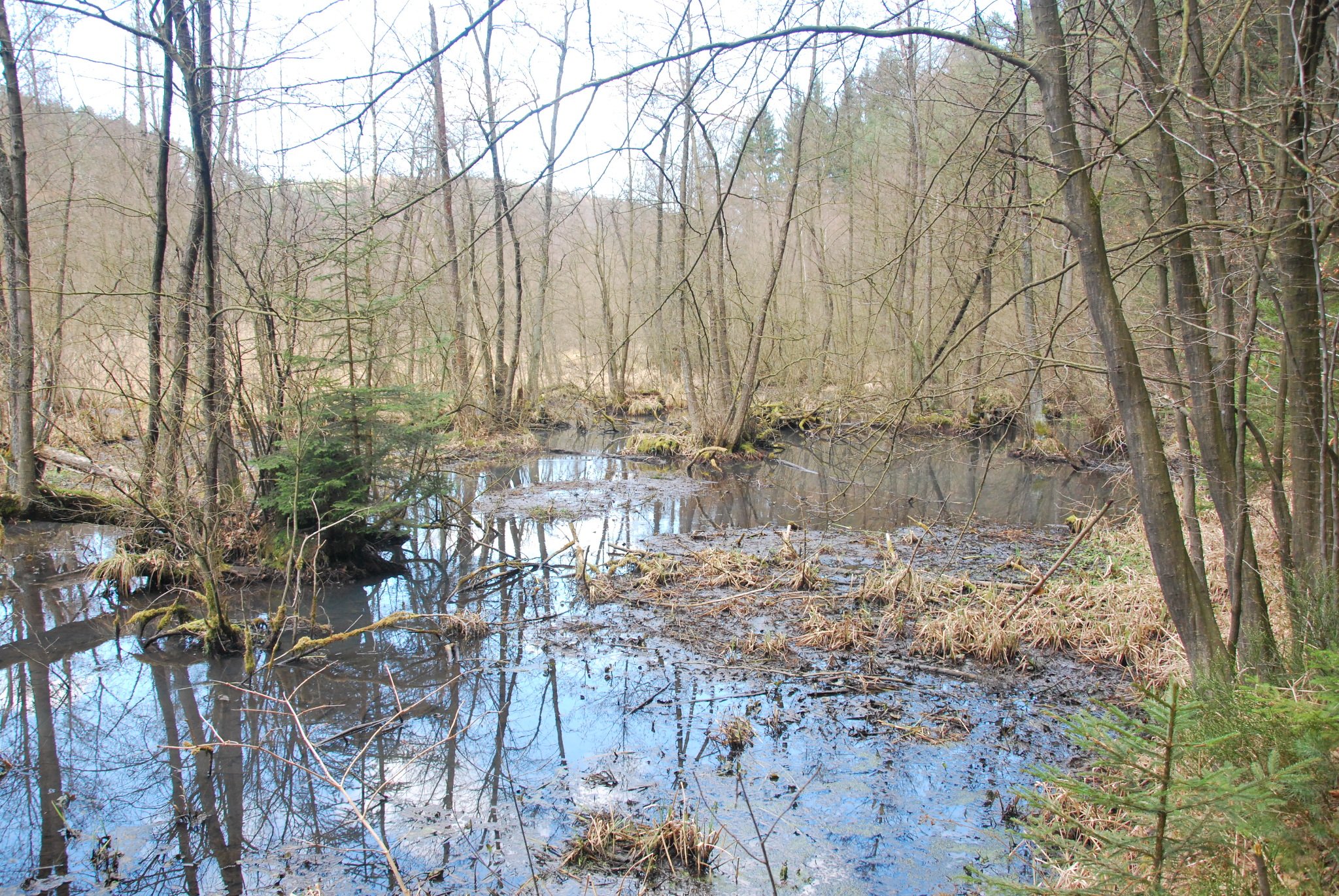 Kolem dalších mokřadů pokračujeme po červené k malému rybníčku u rozcestí Vojtěchov - Boudecký mlýn a dále k většímu rybníku Stříbrník. Odtud až do Ráje vede převážná část cesty po silnici, která je od jara do podzimu poměrně frekventovaná, proto je nutné dbát zvýšené opatrnosti.