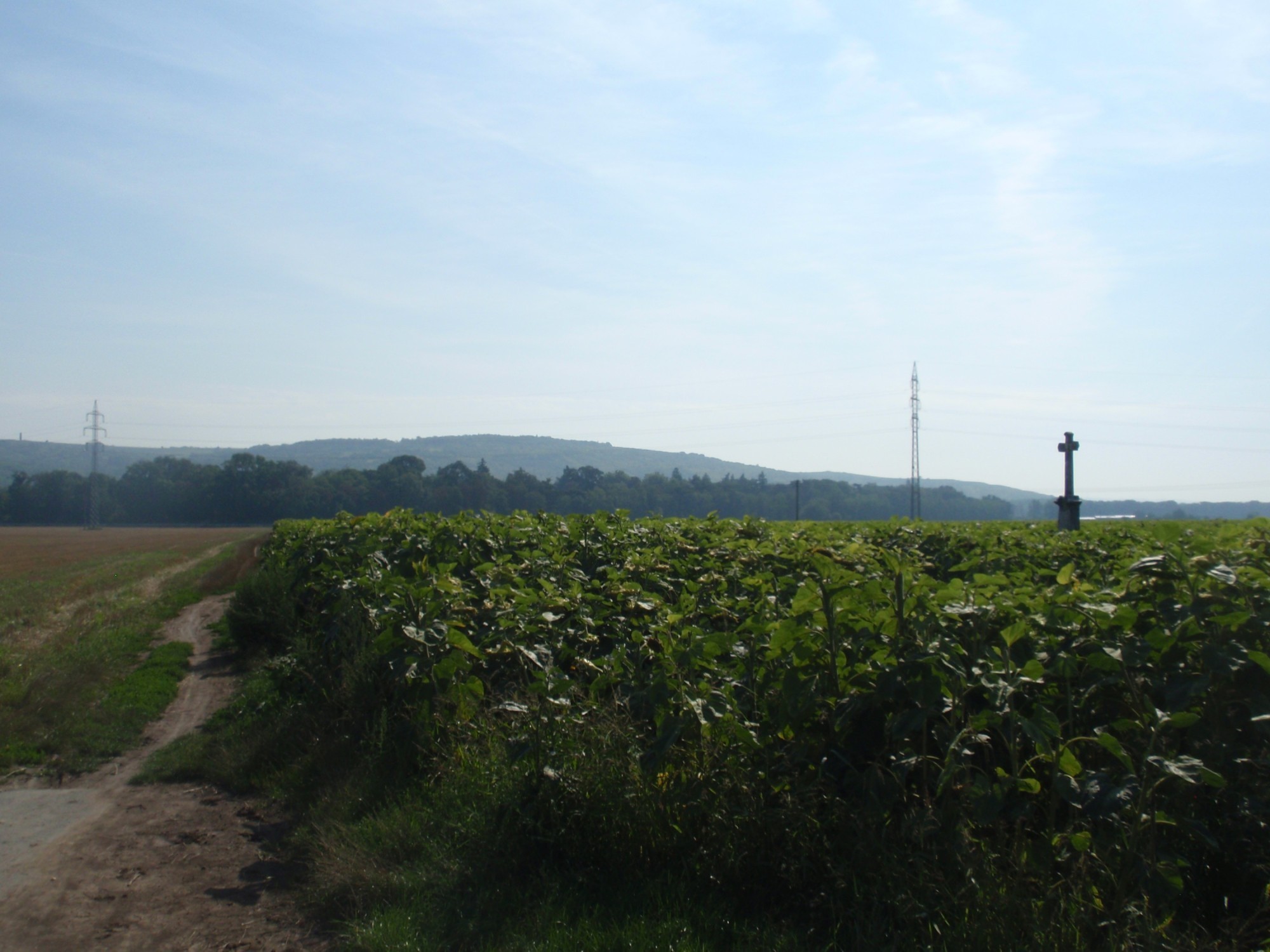 Ze Židlochovic nás vede zelená značka do přírodního parku Výhon, v lesíku potkáme ještě poněkud zarostlou sochu sv. Jana Nepomuckého a zanedlouho už z něj vystoupíme pod známou akátovou rozhlednou (2,5 km), z níž je opravdu daleký výhled od Pálavy až do Brna - a pro odpočinek turistů se nabízí i malý přístřešek s lavičkami