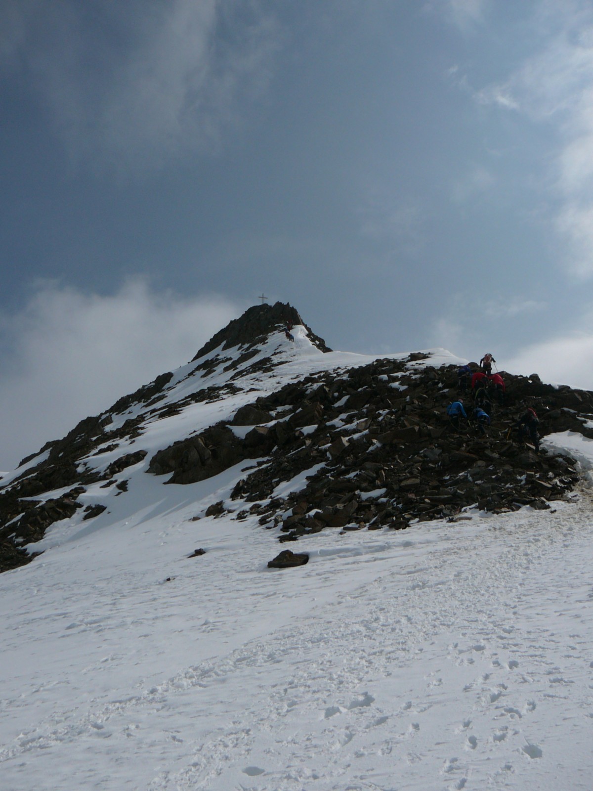 Výstup na II. nejvyšší horu Rakouska a IV. Tyrolska samozřejmě může začít přímo na parkovišti v osadě Vent, ale vzhledem k časové náročnosti "víkendovky" (dvoudenní akce) lze jen doporučit použít sedačkovou lanovku Vent-Stablein. Z cca 1895 m n.m. do 2365 m/m se tak lze dostat s dvoujsměrnou vícedenní (platí více než měsíc) jízdenkou. Loukami pod kopcem Wildes Mannle, kudy lze rovněž dojít na chatu Breslauer, se jde zpočátku strmě, pak mírně údolím Rofenkar (výše ledovec) až těsně pod chatu, kam se jde strměji několika serpentýnami. Chata stojí ve výšce 2844 m/m, takže cesta zabere ze Stableinu asi 1 hod. Do Ventu je to o 30 min. dál. Po celou dobu obchází výrazný vrchol Talleitspitze (a za ní Kreuzspitze) a za sebou nechává např. rovněž na druhé straně údolí Ramolkogely. Kdo volí cestu do Rakouska přes den, ten obvykle na chatě Breslauer po kopcem Urkundkolm (i Urkundholm) přespí (lanovka jezdí cca do 17:30). Když dorazíte na chatu včas, lze ještě asi za 1,5 hod. nahoru i dolů navštívit právě vrchol Urkundkolm. V případě nočního přejezdu nebo za ranního vstávání se od chaty (snídaně se podávají 5:00-5:30, 6:00 - 6:30 a pak později) pokračuje dál, nyní do údolí Mitterkar. Kolem plesa a pod Brochkogely vlevo a Urkundy s Wildspitze vpravo cesta zabere asi 1 hod., než se stočí vpravo pod samotné sedlo Mitterkarjoch (3468 m/m) přístupné po Mitterkarferneru. Navzdory názvu nejde o pravý ledovec, spíše o firn s ledovým podkladem. Do sedla lze již s adekvátním nasazeným horolezeckým vybavením jít přímo starou cestou (45 stupňů) stále po sněhu, případně lze odpočit asi v polovině na cca 50 m vysokou a 100 m dlouhou ferratu. Ta zabere 30 min. až 1 hod. podle počtu osob na trase. Není nijak náročná (asi jako Priečne sedlo nebo Ostrý Roháč), má stupnici B/C (spíše slabá B), ale v posledních letech průvodci v Alpách (z různých zemí, ostatně i v Tatrách) volí trvalé přivázání na lana (!), což (bez ohledu na nebezpečnost) způsobuje pro svou nesnadnost značné časové prodlevy. Ze sedla následuje snadný výstup po moc nelámavém ledovci Taschach v podstatě jedním velkým obloukem asi 1,5 hod. do malého sedla (3650 m/m, snad bezejmenné). Z něj se lze dostat na samotný jižní (hlavní) vrchol Wildspitze, 3770 m/m, jasně rozeznatelný za dobrého počasí podle kříže asi za 30 min. Výstup je prudší, pod sněhem bývá suť, na konci jeden strmější nejištěný úsek opět charakteru třeba Jahňačího štítu nebo některých exponovanějších míst v Roháčích (I - II UIAA, velice krátký). V tomto místě se opět tvoří "zácpy". Vrchol má skvělé panorama (za dobrého počasí), lze sejít i na druhý vrchol na severu a z něj prudším svahem zpět na trasu (doporučuje se vystupovat opačně). Cca 4 hod., 1000 m převýšení. Cesta zpět zabere asi 3,5 hod. + 1 hod. do Stableinu. Kolem 15 hod. lze naložit nezbytné mačky, cepín, sedáky, lano (případně ferratový set a přilby) opustit parkoviště a dostat se tak pohodlně do rána domů.