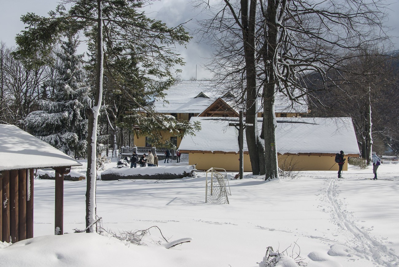 K chatě Paprsek nás dovádí červená TZ, která nás bude zajímat i dál. Po víceméně povinné zastávce v oblíbené chatě pokračujeme přejezdem k lovecké Růžové boudě (víceméně po rovině), pak ale prudčeji k další chatě zv. Medvědí. Naštěstí i zde jezdí rolba, tudíž s brzděním nebývá větší problém. Pozor snad při přejíždění cesty u Medvědí, kolem směřuje asfaltka, kterou se dá vyjet k Paprsku (jen ubytovaní).