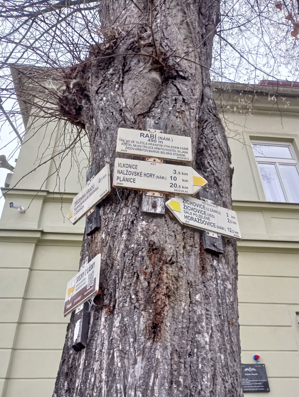 Autem přijíždíme do obce Žichovice, která leží nadohled největší hradní zřícenině u nás, Hradu Rabí.V Žichovicích se dá o víkendu pohodlně zaparkovat před zdravotním střediskem, kolem kterého prochází žlutá turist…