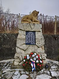 Pomník stojí v travnaté ploše v severní části náměstí. Kolem jsou úzké záhonky, které obepínají kamenný, obdélníkový základ. Nad ním jsou nepravidelně poskládány kamenné kvádříky. Pomník se…
