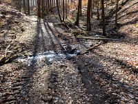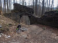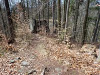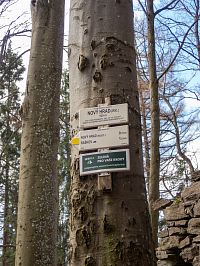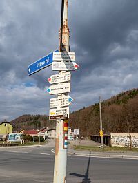 | Rozcestí modré, zelené a žluté TZ, do hradu žlutá | ||||