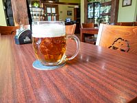 Za zastávkou se trasa poněkud odchýlí od železnice a ještě vystoupá o mírně do lesa, kde nakonec klesá k samotným Hanušovicím, přesněji k silnici od Šumperka (Bratrušova a Kopřivné). Po ní dorazíme k rozcestí se silnicí směr Ruda a turistickému křížení Hanušovice – u pivovaru. Jsme téměř u cíle, pokud se budeme držet značené trasy (souběžná modrá a červená) jsme u nádraží. Pokud nás ale láká podchod pod železniční tratí, není důvod zajít k nějakému občerstvení v Pivovarské hospodě.