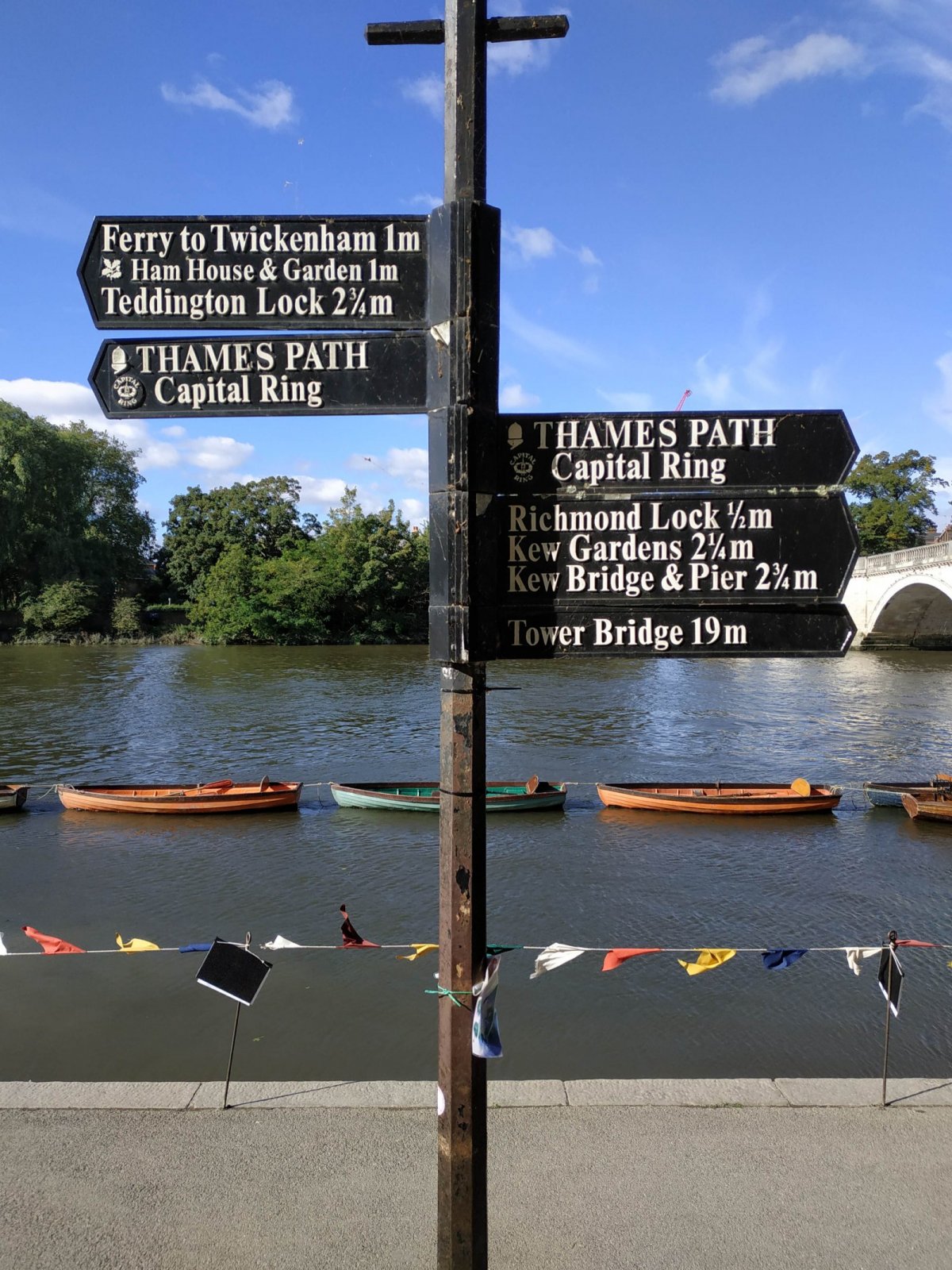 | V Richmondu u řeky se napojite na Thames Path a držet se jejich ukazatelů vám zaručí, že dojdete tuto část až do Hamptonu.Stezka jak jinak napovídá, že jde podél řeky Temže ( proti proudu) .Zprvu řeku stále vidíte, následuje zarostlejší část, která vás cca po 2 1/2 mílích dovede k odbočce k Ham house and gardens( pod správou National trustu - v současnosti možné navštívit jen s prebooked tickets) | ||||
