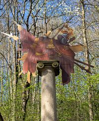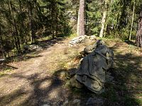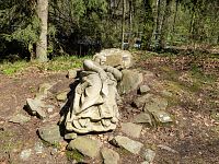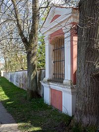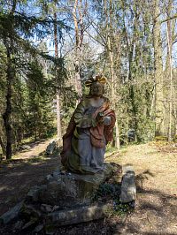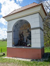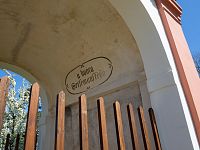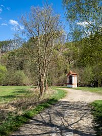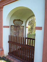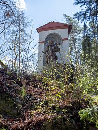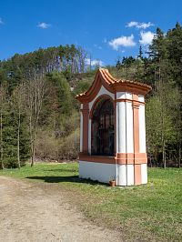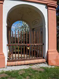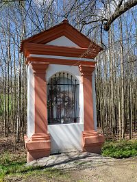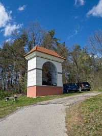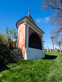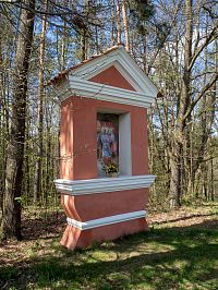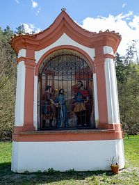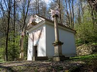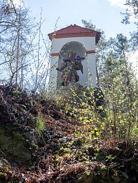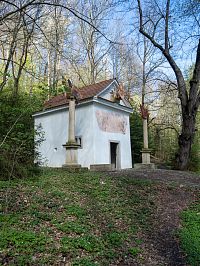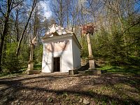 Úplný závěr cesty je ale až dole v lese, asi po 150 metrech najdeme Svatý hrob (nebo Boží hrob). Kaple je mezi dvěma sloupy s plechovou ozdobou na vrcholu a na průčelí kaple s malbou.