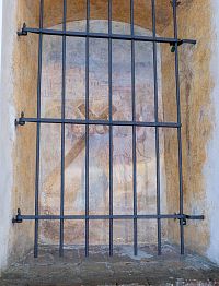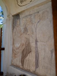 Po pár desítkách metrů máme malbu ve výklenku, kde je na Ježíše vložen kříž.