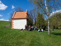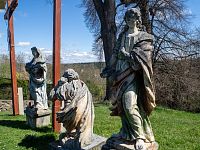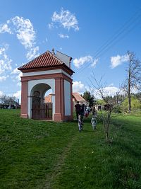Ačkoliv tedy jsem ateista, není důvod pokochat se historickou architekturou spojenou s jarní rozkvetlou přírodou. V Římově je toho k vidění více, ale začněme tedy tou největší pamětihodností, kterou je – samozřejmě zdejší poutní cesta. Ta vznikla v druhé polovině 17. století a tvoří ji celkem 25 kapliček a zastavení s výjevy závěru Ježíšovy pozemské pouti. Kdo někdy navštívil jiné poutní areály, ví, že většina podobných trasa má celkem 13, případně 14 zastávek, jejichž náplní jsou víceméně ustálené výjevy, jak byl Kristus zajat, odsouzen, vláčen s křížem a nakonec ukřižován a zemřel. Ta římovská cesta je přeci jen trošku jiná.