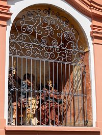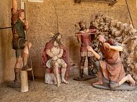 Blíží se finále, tedy odbočka na pěšinu průchozí Soudní bránou s malbami plačících žena s vojáky s Ježíšem. Jak víme, před výstupem na Golgotu již odsouzenci ubývali síly, z přihlížejících byl Šimon Cyrenský vybrán, aby pomohl vynést kříž na vrchol (další sochy).
