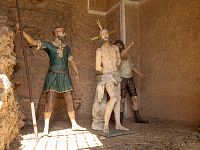 Vracíme se na poutní cestu, první malovaný výjev uvádí název Ježíš tupen a urážen. Vodní brána Jeruzaléma navazuje vstup do města s dalším trýzněním Krista ozbrojenci.