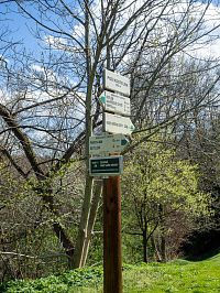 Z kopce pokračujeme asi sto metrů k průchozí kapli Stádní brána. Malba znázorňuje odchod Krista s druhy z Jeruzaléma do Getsemantské zahrady. Další stovka metrů následuje k nízké kopli se sošným výjevem spících apoštolů s několika bdícími druhy (podle klíče bychom měli určit Šimona – Petra). Nenápadně jsme došli do údolíčka s lesním porostem, tady jsme potkali mladou paní, sbírající nějaké pupeny (tak jsem ji oslovil, jako „babu kořenářku“ – a kupodivu na mě neposlala psa, ale přitakala že vlastně ano). Výklenková kaple Smutné duše, znázorňuje malovaný výjev, kde Kristus praví o svém stavu mysli. Lesní cesta nás vede kolem potoka, kde poutní cesta opouští modré značení a vrací se téměř o 180°. Další pěší značení patří barvě zelené.