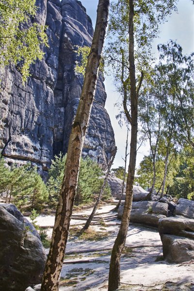 K absolvování je potřeba trochu lepší fyzická kondice, na trase vás totiž čeká značné převýšení. Po cestě budete přelézat žebříky a absolvovat výstupy a sestupy po schodech. Některé části turistické cesty jsou zabezpečeny lany. Jako výchozí bod jsme zvolili lesní parkoviště (bývá obsazeno, je potřeba přijet brzo ráno) a trochu netradičně nejdeme po červené (jako všichni), ale jdeme kousek do kopce po silnici. Za autobusovou zastávkou odbočuje vlevo do lesa asfaltová silnice s fialovou tz. vydáváme se po ní (jestli se vydáte v našich šlépějích musíte dávat pozor na značení, a stáhněte si pro jistotu trasu do navigace. Jdeme totiž pěšinami a po černé značce pro horolezce tj. mimo turisticky značený chodník.). Zhruba asi po 250m, po pravé straně je pěšina do lesa a skal. Chodník je opatřen černou značkou, značení není husté, tak je potřeba pozorně sledovat cestičku. Náročnější orientaci však bohatě vynahradí skalní útvary a naprostá absence jakýchkoli lidí. Jen ke konci vidíme na skále Falkenstein horolezce.
