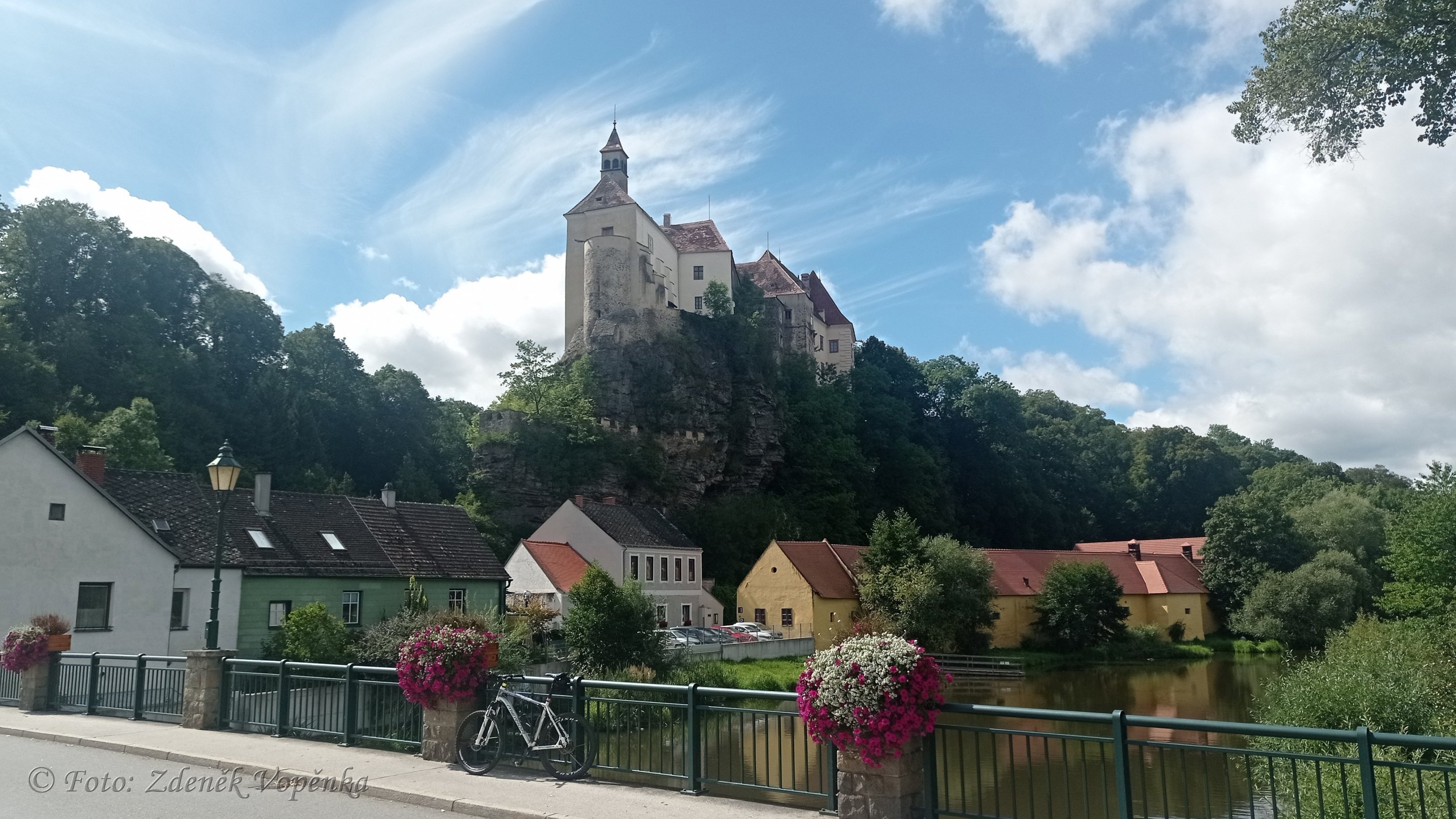 Thayarunde je rozdělěna na pět částí. Já jsem si pro druhý den vybral okruh se začátkem a cílem v Raabs an der Thaya. Vede po vedlejších, méně frekventovaných silnicích a je nahoru dolů, žádná rovina podle řeky jako včera. Auto parkuji u řeky a po cyklostezce vyjíždím nad řeku Deutsche Thaya směrem Speisendorf. Odtud pokračuji do městečka Karlstein an der Thaya, jehož dominantou je hrad Karlstein. Dál mě cyklostezka č.8 vede prudkým stoupáním od řeky do vesničky Thures a přes Wetzles do Neuriegersu ležícího na samé hranici s Českem u Písečné. Zde odbočím na cyklostezku č.1 vedoucí do Weikertschladu an der Thaya. Tady v přírodním koupališti u Moravské Dyje dělám občerstvovací přestávku a následně pokračuji cestou přímo podél řeky až k Hadermuhle. Cesta podél řeky tu končí a tak se škrábu cestou nahoru vytěženým lesem. Nahoře u silnice stojí krásná Boží muka a po jejich prohlídce mířím do Sussenbachu a dále do Grossau. Tady cyklostezka odbočuje mezi pole a míří do další hezké vesničky - Modsiedlu. Za vesnicí je krásná vyhlídka na Raabs a celé údolí Dyje. Strmým sjezdem mířím zpět do Raabu a ještě jednou si na kole projedu městečko, především náměstí s radnicí a pak hrad vypínající se majestátně nad líně tekoucí Dyjí. Krásný výlet...