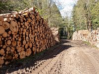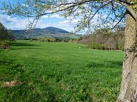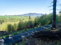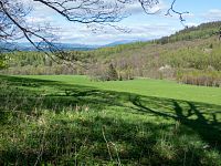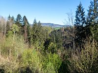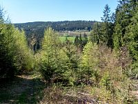 | Odbočka z trasy k okraji lesa, panoramatický výhled na severní stranu | ||||