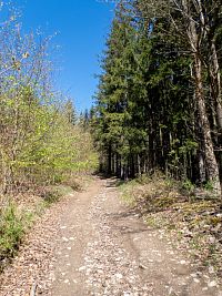 | Z lesní cesty na pěšinu do údolí | ||||