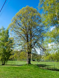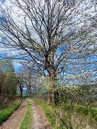 Kdo by nutně potřeboval, může červenou trasou pokračovat vzhůru k Severomoravské chatě. Kdo to vydrží až na závěr trasy, zvolí odbočku po mírně kamenití lesně-polní cestě k Podlesí (kdysi Krumperky). Jde o starou cestu do Raškova (Bohdíkova) na opačné straně kopců. Dříve tu chodívaly i procesí k poutím na Svaté Trojici. Cesta je lemována pozoruhodnou alejí převážně klenů (javor podobný platanům). Stromy už jsou občas věkovité a poněkud zanedbané. Díky tomu ovšem vytváří zajímavé skulptury svého rozvětvení. Do aleje občas přibude nějaká planá třešeň nebo jiný různodruhý strom.