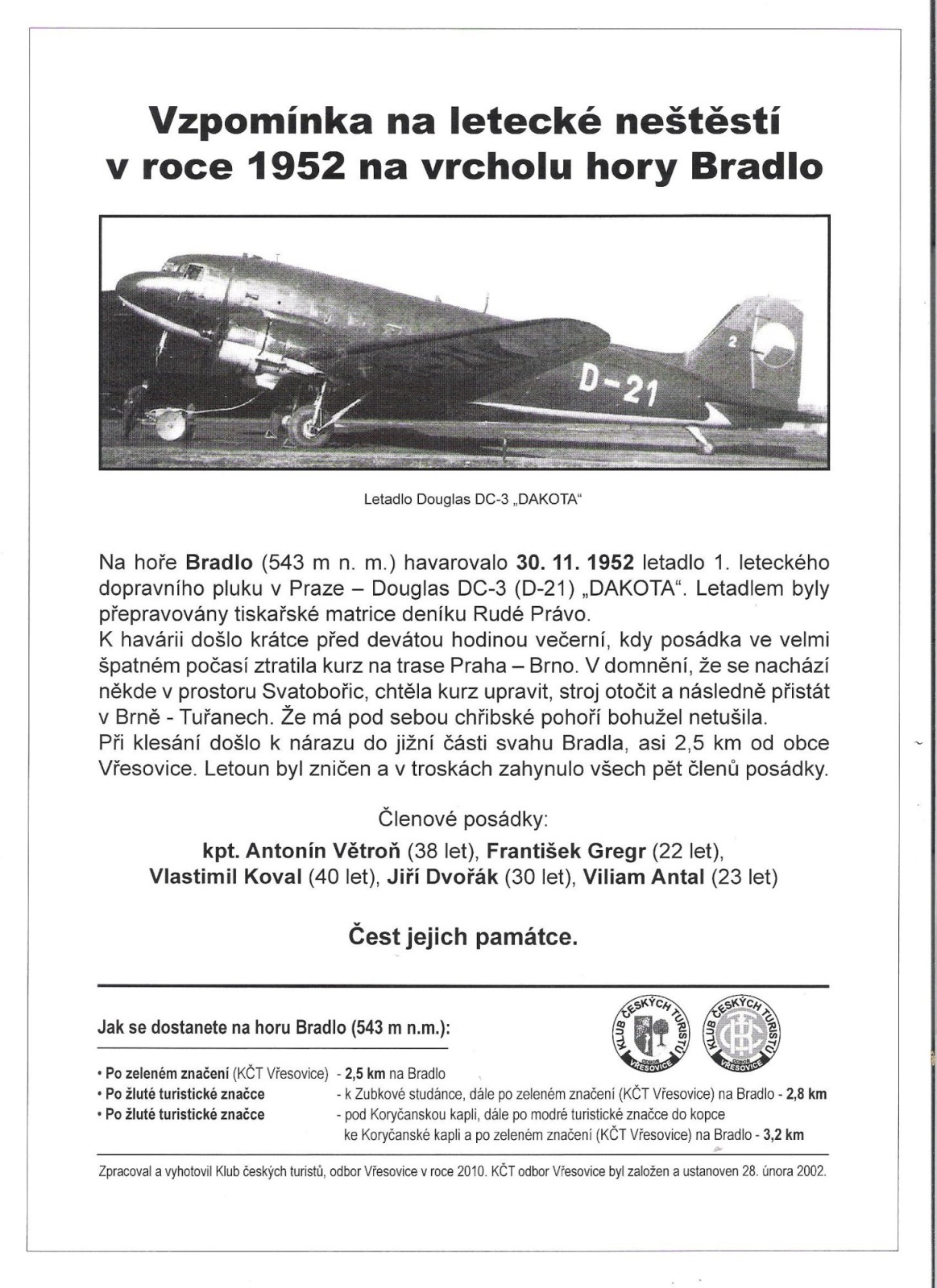 Bradlo-pomníček letecké katastrofy z r.1952  autor: Turista1950