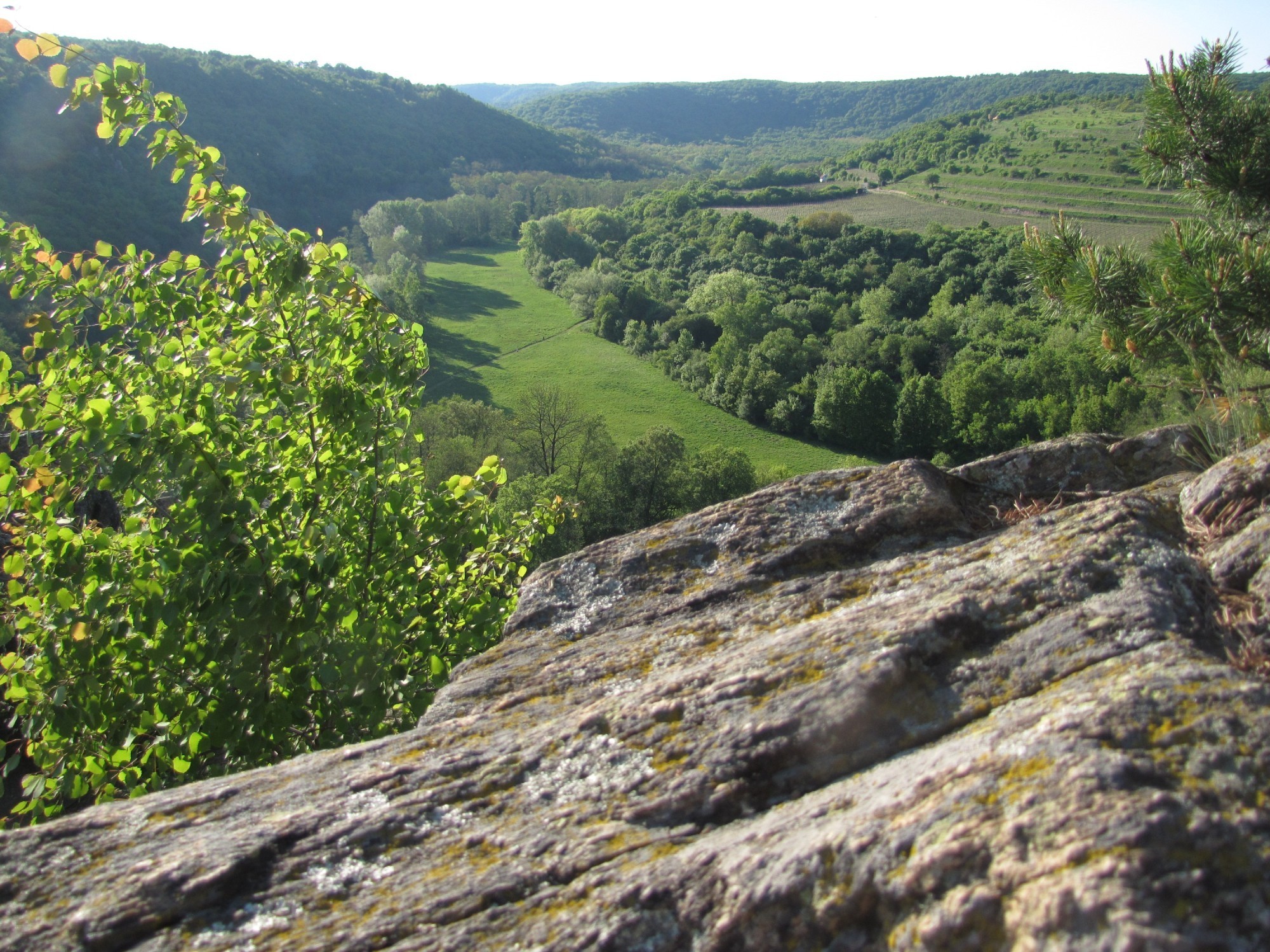 | nádherná vyhlídka ze skály na meandr Dyje s vinicí Šobes (nejznámější a nejlepší vinice v ČR) | ||||