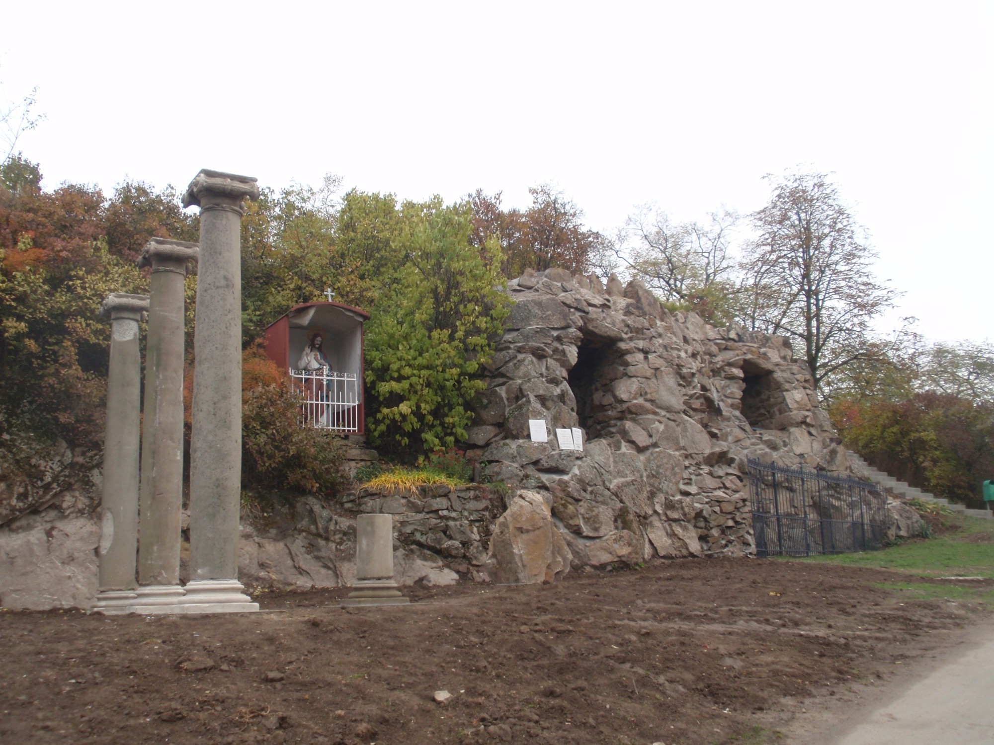 Stejně jako ráno v Bohuticích, tak i nyní v Krumlově se místní obyvatelstvo čile hemžilo pouze na hřbitově při předdušičkovém úklidu. A my se vydali na poslední úsek naší trasy, tentokrát po modré značce z náměstí na vlakové nádraží, což je 2,5 km krásným lesem ke kapli sv. Floriána nad městem a pak ještě trochu polňačkou a silničkou, ale správný turista přece na pomocný autobus potupně nečeká…