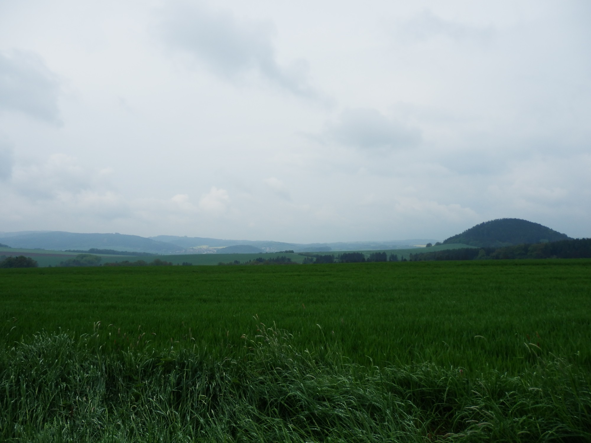 Za lesíkem ovšem následuje sestup na silnici na rozcestí Perná - podél pole, rozbláceného snad téměř vždy, tentokrát však opravdu náramně! Hezkou chvíli jsme pak v trávě na okraji silnice pucovali boty!