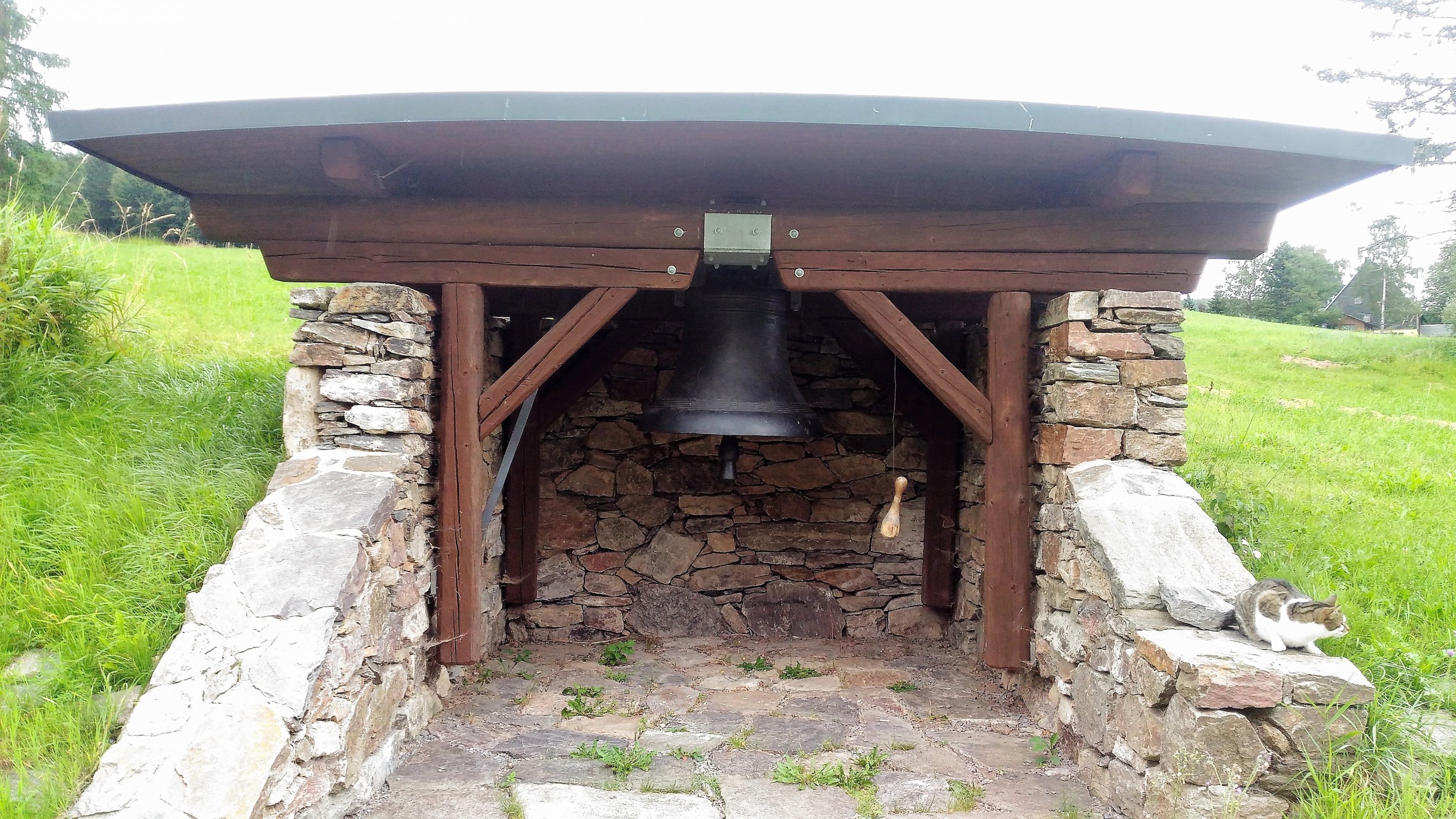 Vracíme se kousek zpět a přecházíme do Německa. Cestou zvonů stoupáme k malému rybníčku, u kterého je ve zvoničce zavěšen 428 kg vážící zvon, který léta vyzváněl v Deutschneudorfu.