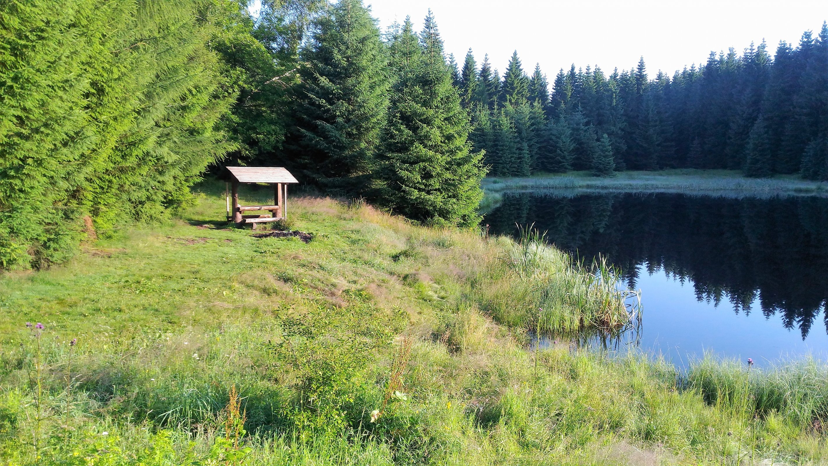 Vycházím z Načetína tichou lesní silničkou k Červenému rybníku v přírodní rezervaci Prameniště Chomutovky. Jde o Evropsky významnou lokalitu v centrální části Krušných hor.