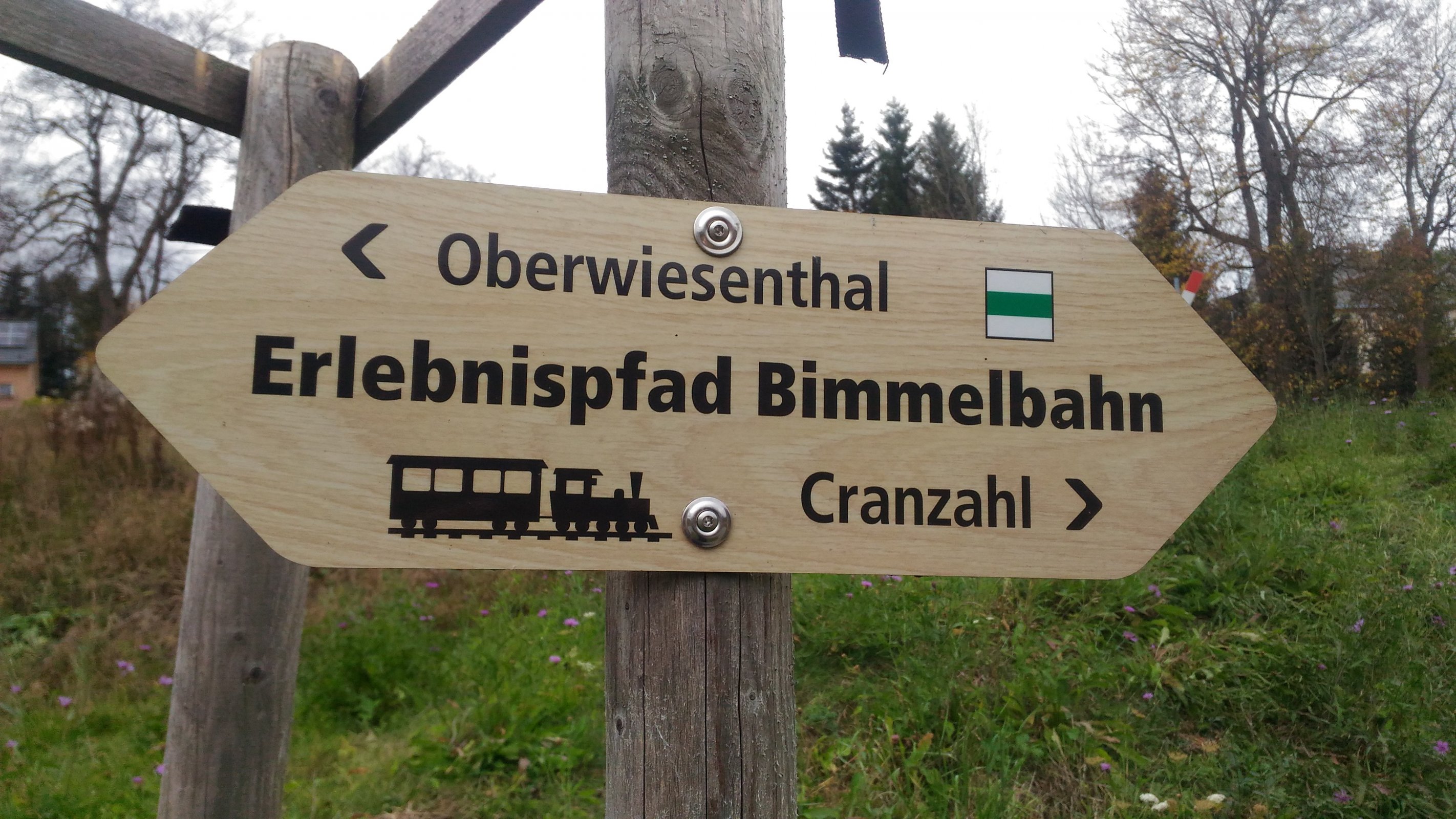 Po prohlídce nádražní budovy jdu k 23 m vysokému a 110 m dlouhému viaduktu přes Hüttenbachtal, kde začíná zážitková stezka Bimmelbahn směrem na Cranzahl. Turistická stezka podél trasy Fichtelbergbahn je značená zeleně.