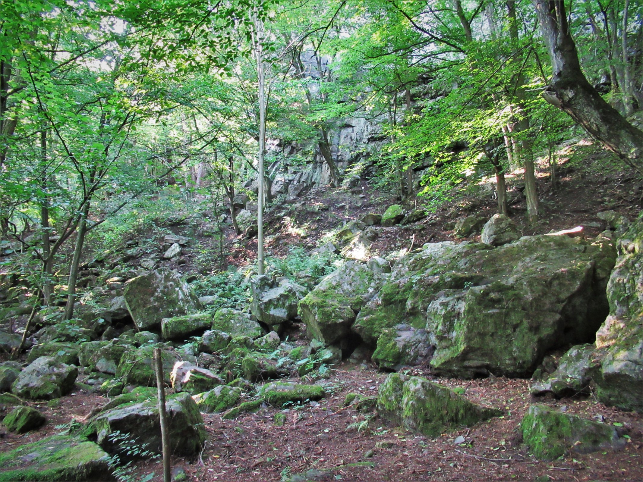 Od paty svahu vystupuje mohutná Sochorská skála
