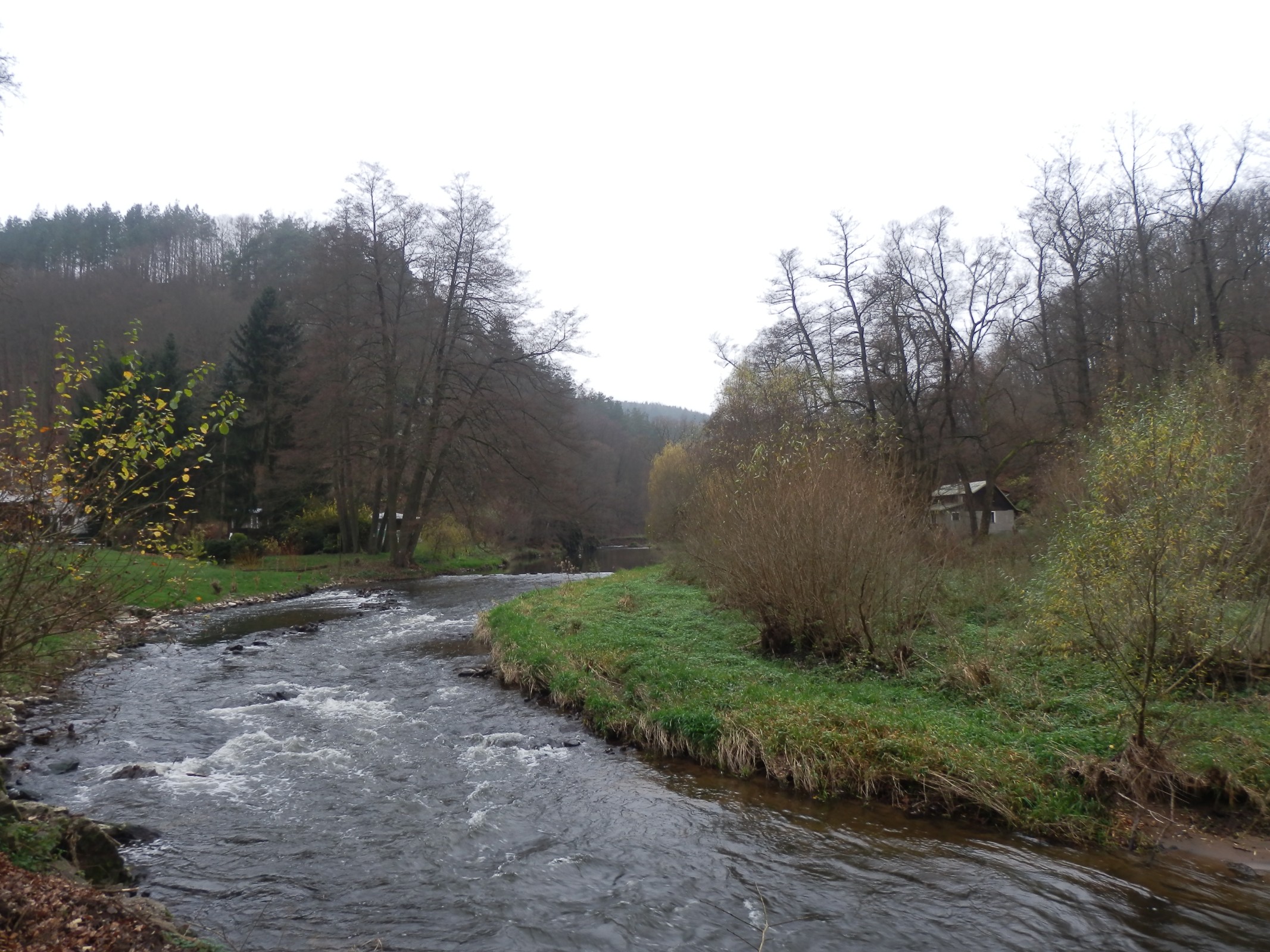 Poté nás cesta vedla kolem odbočky ke zřícenině hradu Levnova (1 km) dolů do údolí Oslavy ke starému mlýnu a přes most do romantické chatové osady Pod Levnovem (1,5 km).