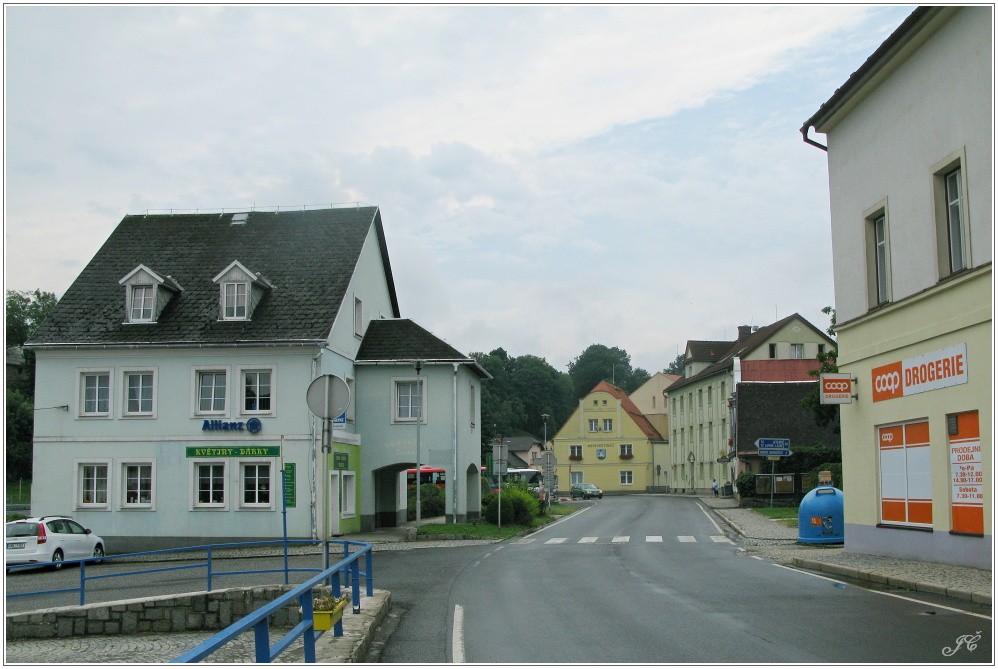 | Start trasy. Po chodníku jdeme do centra Žulové (foto 1). Kousek se vrátíme na Josefské náměstí (foto 2) a kolem kostela sv. Josefa (foto 3) spadneme k Vidnavce, odkud začíná stoupání. | ||||