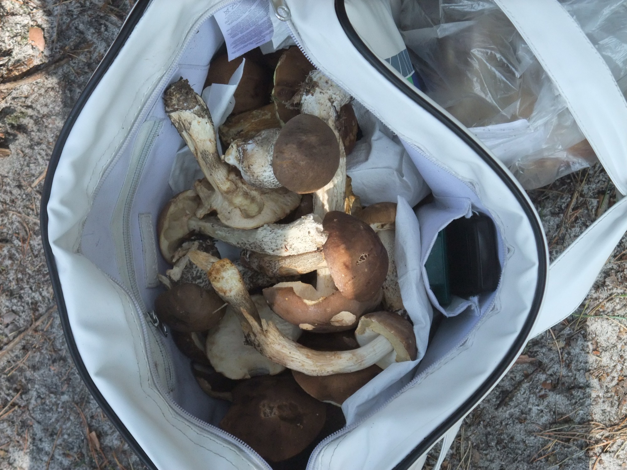 Samozřejmě, že jsme se sbíráním hub absolutně nepočítali a tak jsme musela obětovat svou kabelku, abychom měli houby do čeho posbírat. :-)