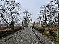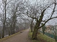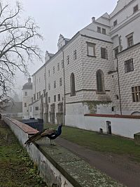 A potom jsme zamířili „do terénu“. Procházka kolem zámku je vždy tak trošku výletem do přírody, kde navíc můžete pozorovat čilost zrzevých veverek i důstojnou lenivost oněch „pestrobarevných slepic s korunkou“. Tentokrát to navíc bylo s krabičkovými zastaveními na téma různých dětských her a hraček od Černého Petra a Igráčků až po tetris. Projít si zámecké valy a pohlédnout na Pardubice „přes miřidla kanonů“ se navíc neomrzí ani v mlze.