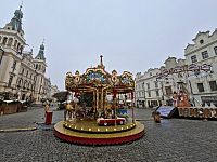 K zámku jsme se pak ještě později vrátili, ale teď nastal čas opět zkontrolovat adventní trhy na Pernštýnském náměstí. Už tady bylo podstatně živěji, točil se dětský kolotoč a my mohli ochutnat např. borůvkový svařák nebo horkou hrušku. Ještě předtím jsme ale v muzejní části knihovního centra na Přihrádku zcela neplánovaně navštívili komorní – a velmi příjemnou – vánoční výstavu Příběhy nebeklíčů, která představuje historické modlitební knížky.