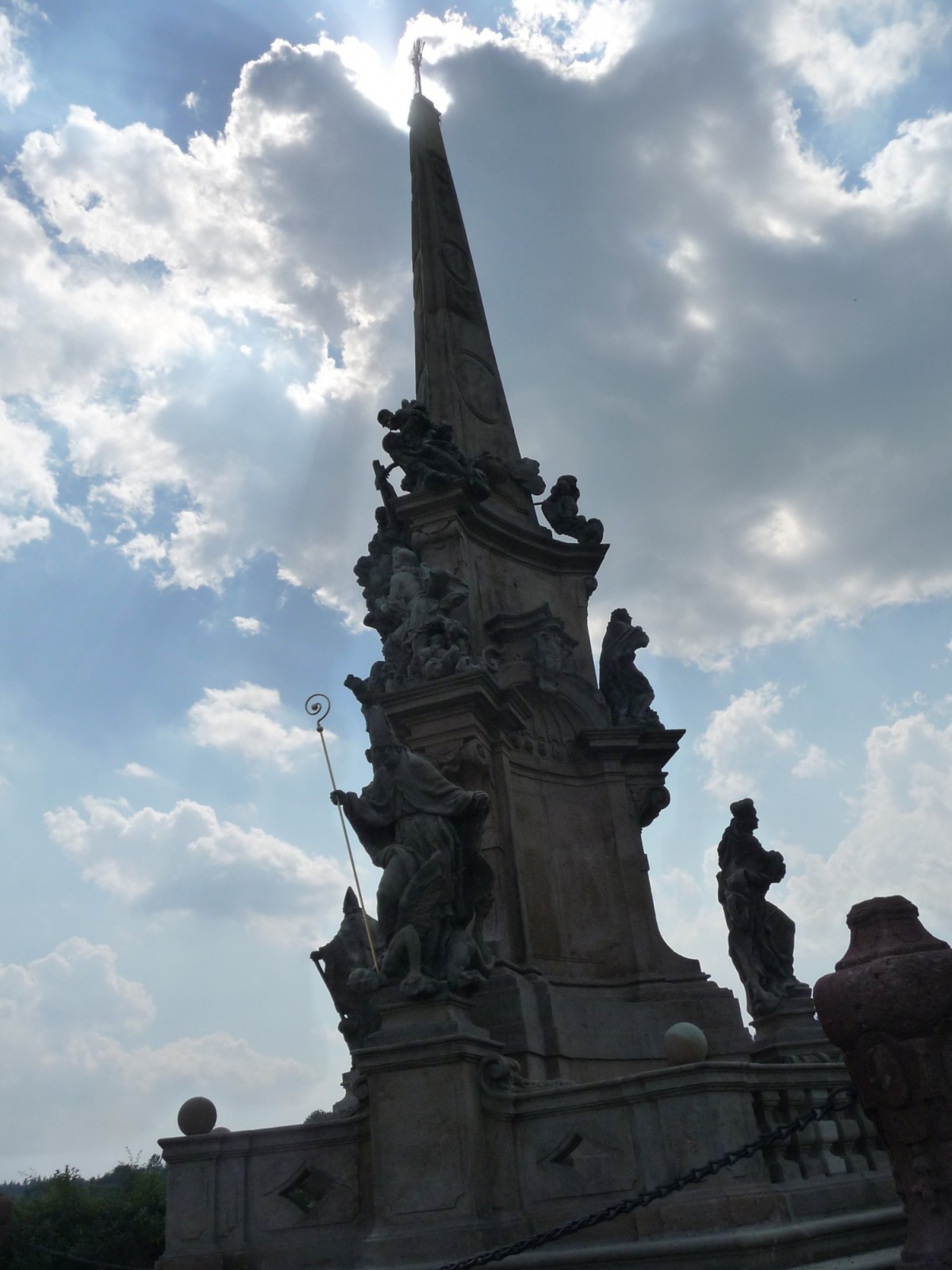 Vstupujeme do zámecké zahrady vlastně anglického parku a pod mohutným baldachýnem letitých stromů a okolo kašny se sochami M.B.Brauna se dostáváme k zámku který je moc pěkně opraven. Na místě se od pána z ostrahy dozvídáme, že do zámku se dá podívat pouze v sobotu a po dohodě s kastelánem, stejně tak i do kostela nejsvětější trojice ,,My jsme zde v pátek odpoledne“ Tam také zjišťujeme, že obě tyto památky jsou zatím opraveny z venku a na interiérech se teprve pracuje. Přesto je nám dovoleno nahlédnout a udělat si představu o tom kolik práce zde bylo uděláno s ohledem na to, že zámek v sedmdesátých letech min. století vyhořel a poté třicet let chátral. Dokonce na něj byl vydán demoliční výměr.