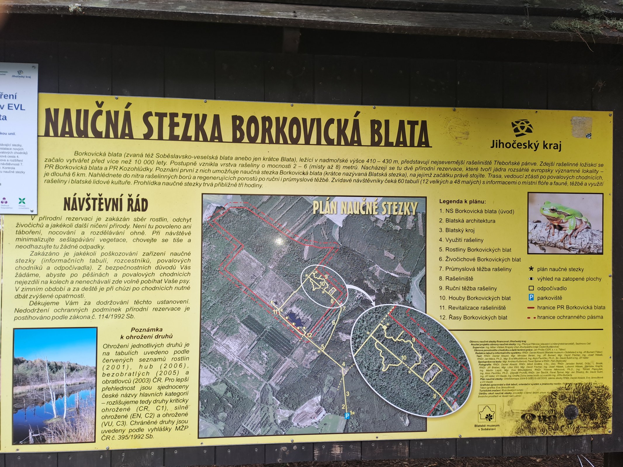 Vážení přátelé turistiky i Turistiky, tentokrát bych vás rád pozval na Borkovická blata, což je Přírodní rezervace, nedaleko obce Borkovice, kousek od Veselí nad Lužnicí. Vycházíme z Borkovic, kam nás dovezl autobus ze Soběslavi a jdeme po žluté značce, která nás dovede až na rozcestí Blatská stoka- most. Odtud jdeme po modré značce, po silnici až k parkovišti u vstupu na Naučnou stezku Borkovická blata. Samozřejmě, pokud jedete autem, můžete výlet započít až zde, na parkovišti. Jdeme po zelené značce a šipek Naučné stezky. Projdeme území, na kterém se nachází velké množství vzácných rostlin, místy i po poválkových cestách, protože je zde velké podmáčení. Potkáme infotabulky, které informují o rostlinách, obratlovců i bezobratlých, které je možno zde najít. Je tu i plocha, ze které se v minulosti těžila rašelina, pro lázně Bechyně. Jsou tu i pozůstatky kolejiště, po kterém se rašelina přibližovala. Trasa Naučné stezky, měří cca 5 kilometrů, trasa s výchozím i konečným bode Borkovice, měří 12 kilometrů. Bohužel k parkovišti a zpět do Borkovic, se jde po stejné cestě.