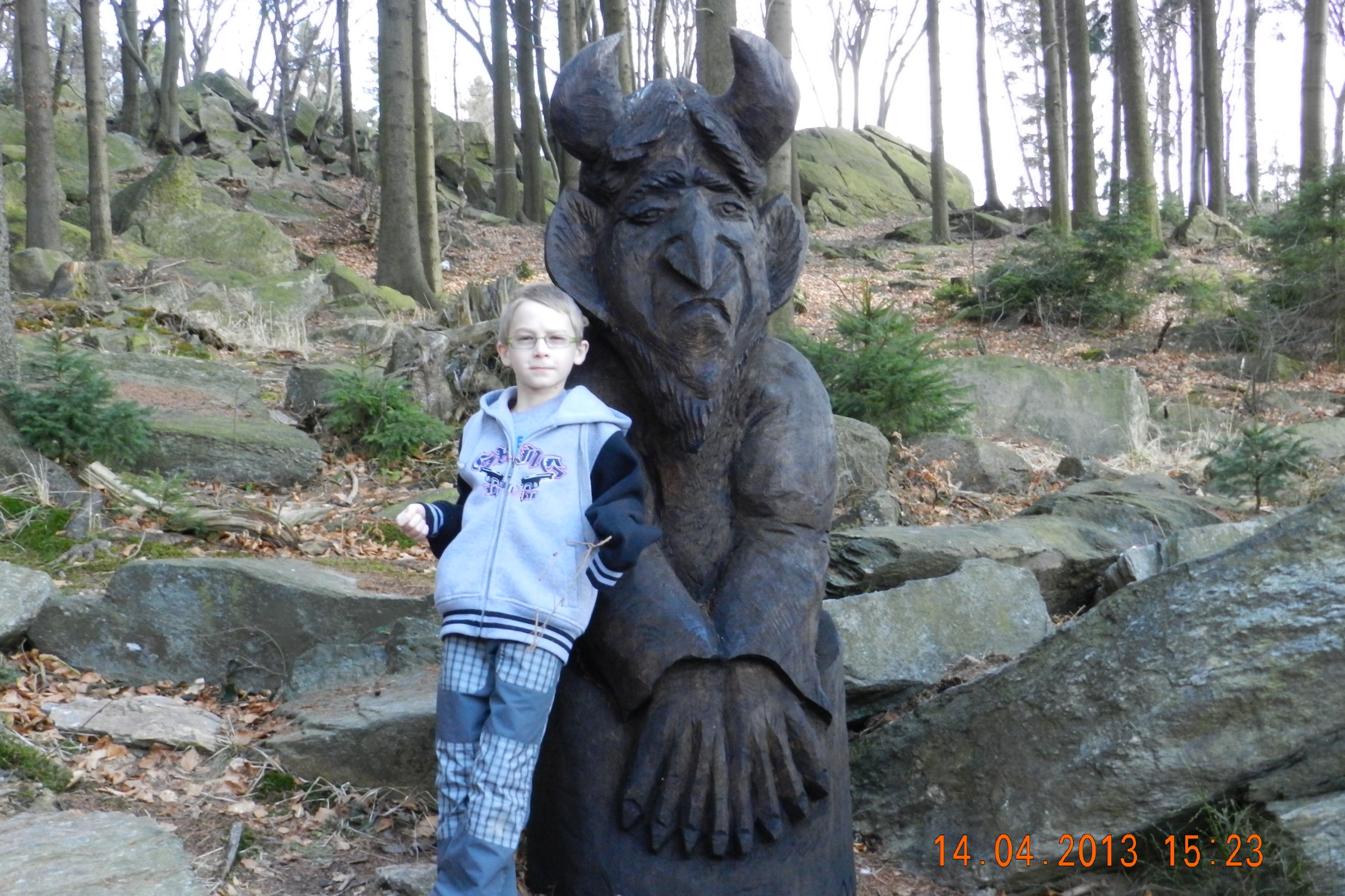 V Libině vystupujeme s Janou z vlaku v 9 hodin. Je překrásný dubnový jarní den. Napřed nás čeká pořádný, půl km dlouhý "strmák" nahoru loukou na okraj lesa. Za námi se pomalu "plazí" dva další vandrovníci už pokročilejšího věku. Necháme je předejít a mezitím se věnujeme svačině a nádherným výhledům na Hraběšickou hornatinu v čele s Volyní a na pásmo Hrubého Jeseníku, který uzavírá obzor na…