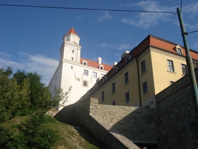 Náš cíl byl Bratislavský hrad,ke kterému jsme šli zhruba kilometr do mírného kopečku přilehlými uličkami.Jeden ze symbolů města je právě Bratislavský hrad,tyčící se nad Dunajem.Kamenný vrch byl vybudován v 10.století,když oblast byla součástí Uher,přestaven v 15.století na gotický,v 16.století na renesanční a v 17.století na barokní styl.Přes vládu Marie Terezie byl hrad sídlem v uherské části Habsburské monarchie.V roce 1811 hrad vyhořel do základů a zůstal v ruinách až do 50.let 20.století,když byl rekonstruován v letech 1953-1968 většinou v barokním stylu.Po prohlídce hradu lze navštívit i další památky které se nacházejí převážně v historickém jádru města.Stará radnice-je komplex budov vybudovaných v 14.a 15.století a dnes je sídlem městského muzea.Michalská brána-je jediná brána z původních středověkých Městských opevnění a je jednou z nejstarších budov ve městě.Městské centrum je charakterizováno mnohými paláci v barokním stylu.Grassalkovichov palác,vybudovaný okolo roku 1760 je dnes sídlem slovenského prezidenta a slovenská vláda má sídlo v bývalém Arcibiskupském paláci.K známým sakrálním stavbám patří Konkatedrála svatého Martina vybudovaná v 13.-16.století,která byla v letech 1563-1830 korunovačním kostelem uherských králů.Františkánský kostel z 13.století je nejstarší zachovalý kostel v Bratislavě a byl místem rytířských ceremonií.