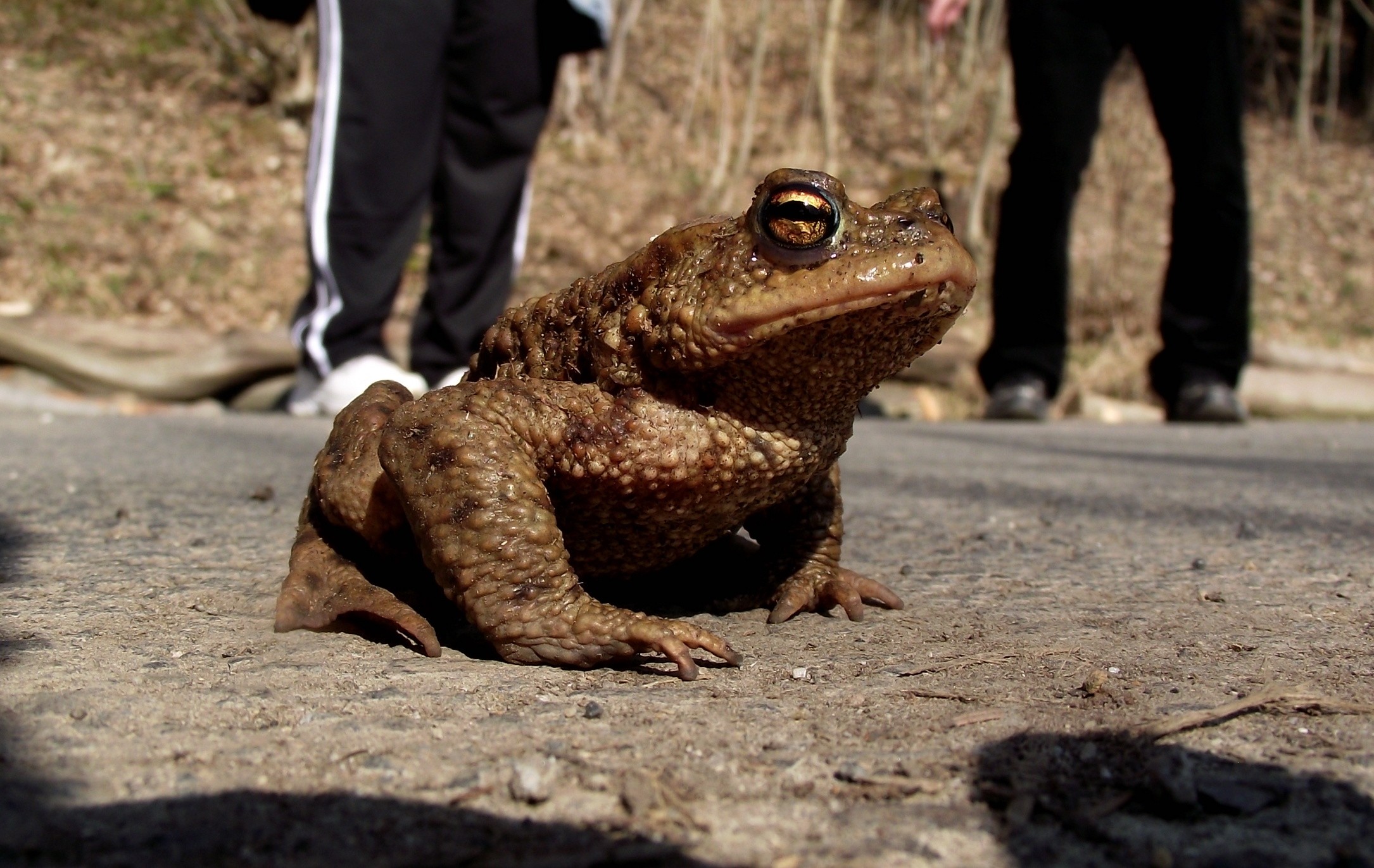 Poté již scházíme dolů pod hrad k broumovským rybníkům. Někdejší součást místního pivovaru a Frantova dětství poskytne „sbírku žabiček“, příjemné prostředí i jakýsi závod rybářů, u kterého jeho účastníci řvali, jako by chtěli dokázat, že ryba je netečný hluchý tvor a při rybolovu skutečně záleží jen na nabízené laskomině. Tuto část dne jsme pojali opravdu jen jako příjemnou procházku za neustálého debatování na všechna možná i nemožná témata. Tady také vznikla úvodní fotografie a druhá část názvu tohoto článku. My jsme si totiž také zasoutěžili, a to o nejlepší snímek na asfaltu lenošící žáby (lenošilo jich tam hodně, ale některé už to měly navždy a byly také již méně fotogenické). A protože jsem člověk skromný, neprozradím, kdo nakonec vyhrál …