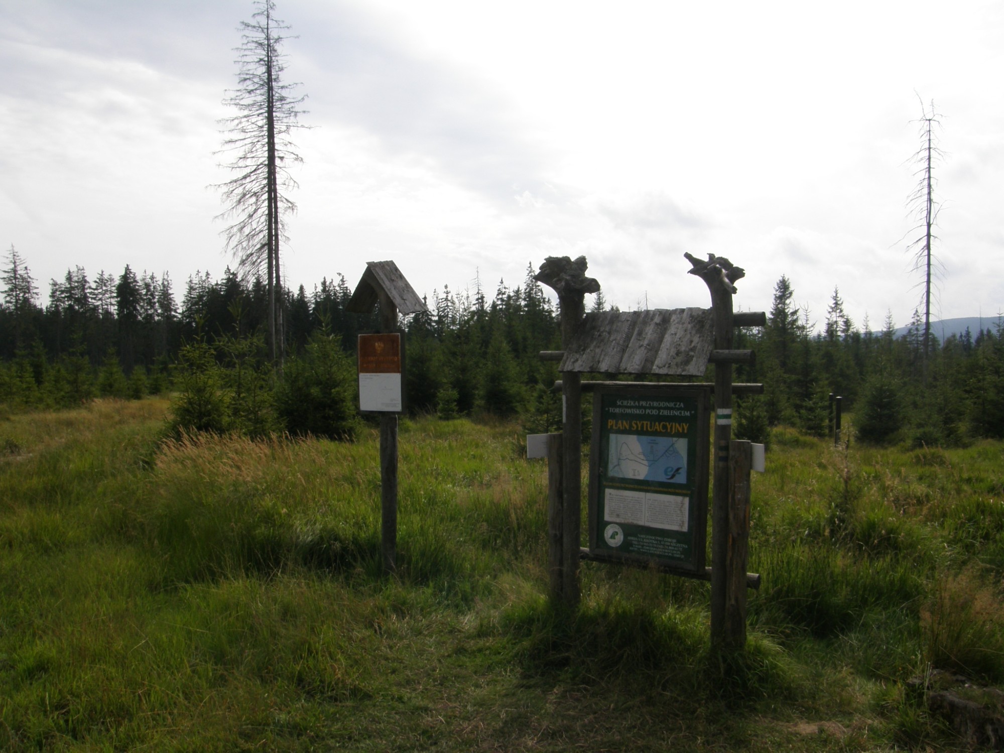 JEN KOUSEK ZA HRANICEMI LEŽÍ V POLSKÉ ČÁSTI ORLICKÝCH HOR,ROZSÁHLÉ RAŠELINIŠTĚ S NEJVĚTŠÍM POROSTEM BOROVICE BLATKY, V TÉTO OBLASTI.Dostat se sem není těžké.Autem můžeme můžeme do Orlického Záhoří,kde je býv.přechod a hned na křižovatce v Mostowicích se dáme do leva.Hlavní silnicí stále dále až před Zieleniecem odbočíme silničkou do lesa a zhruba po 2km dojedeme na malé parkoviště.Odtud vede zelená značka až k rezervaci.Je možné také z naší strany pěšky.Ze 3erlichu po modré do Zieleniece a tady už po zelené do údolí a k rezervaci.Procházka rezervací zabere zhruba hodinku.je zde rozhledna a několik odpočívadel.Trasu naučné stezky lemují informační tabule, místy se prochází po zpevněných dřevěných chodnících. Vrstva zbarvené rašelinné slatiny se pohybuje od 3 do 10 metrů. Můžeme zde obdivovat unikátní flóru, která zde přetrvala z doby ledové. Na začátku Topieliska se nachází volně přístupná nová dřevěná rozhledna. V sousedním bažinatém rašeliništi Czarne bagno pramení řeka Divoká Orlice, která později vytváří až po Zemskou bránu 30 km hranici.