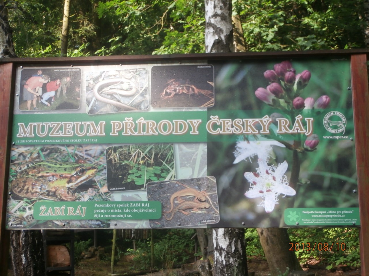 Od kempu vede modrá turistická značka do Prachova, kde se chceme před vstupem do skal vzdělat v Muzeu přírody Českého ráje. Přicházíme sice o něco dříve, než je otevírací doba, ale čas rychle utíká a my jsme vpuštěni do areálu. Pan průvodce nám nejpve ukazuje, kde jaká zvířátka najdeme. O spoustě drobných, především vodních živočichů nám toho také dost povídá. Pak máme možnost si vše projít sami. Na celé expozici je zajímavé to, že všechna ta drobotina přišla do muzea sama. Podle slov průvodce se jim v muzeu jen vytvářejí vhodné životní podmínky. Další důležitou složkou je malé aboretum, které poukazuje na stromy, které potkáme toulkami Českým rájem.