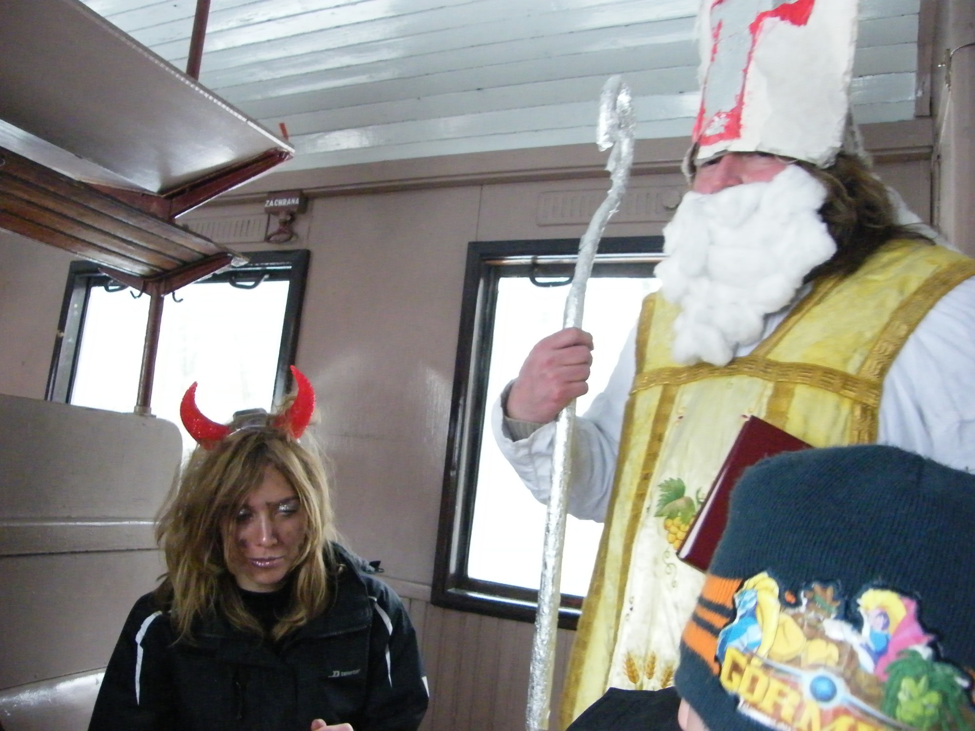 cesta parním vláčkem,doprovod nám dělal Mikuláš a čertice