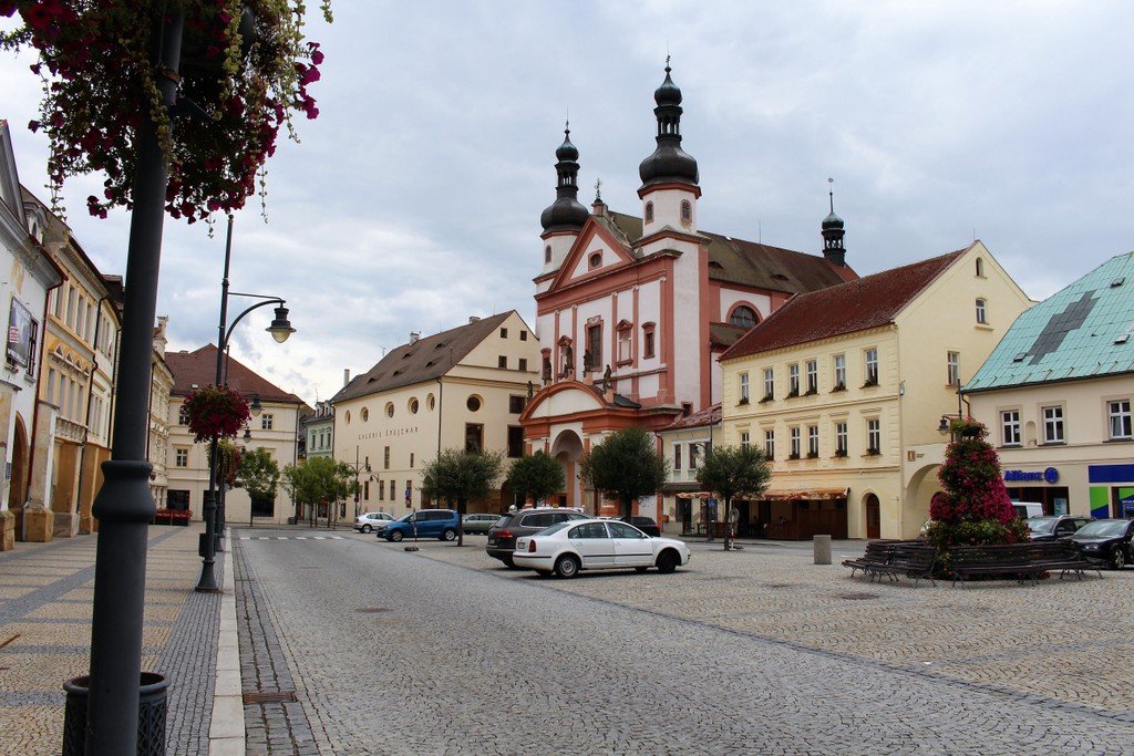 Chomutov, náměstí se sloupem Nejsvětější Trojice