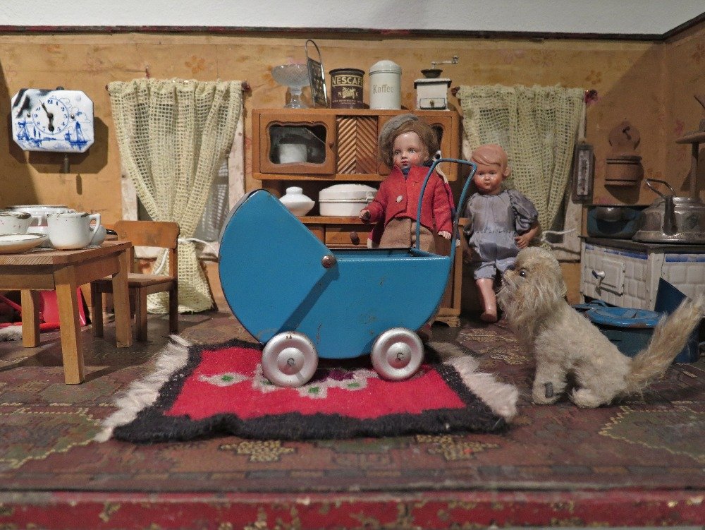 Expozici sice vládnou hlavně nejrůznější panenky s kočárky, domečky i pokojíčky a plyšoví medvídci, najdeme tady ale i pár stavebnic, autíček a střelných zbraní. Nechybí však ani tradiční houpací koník, stolní loutkové divadlo nebo kuriozity jako je německý flašinetář, panenkovský „pokojíček“ v podobě školní třídy (chudák dítě - pokud se nejednalo o budoucího pedagoga - kiteré takový dárek dostalo) nebo panenka v šatu jeptišky. Neobvyklý je také pohled na "barbínu" z doby, kdy ještě neměla silikony a vyštípaná žebra. Exponáty doprovází – kromě popisek – rovněž zajímavé informační panely.