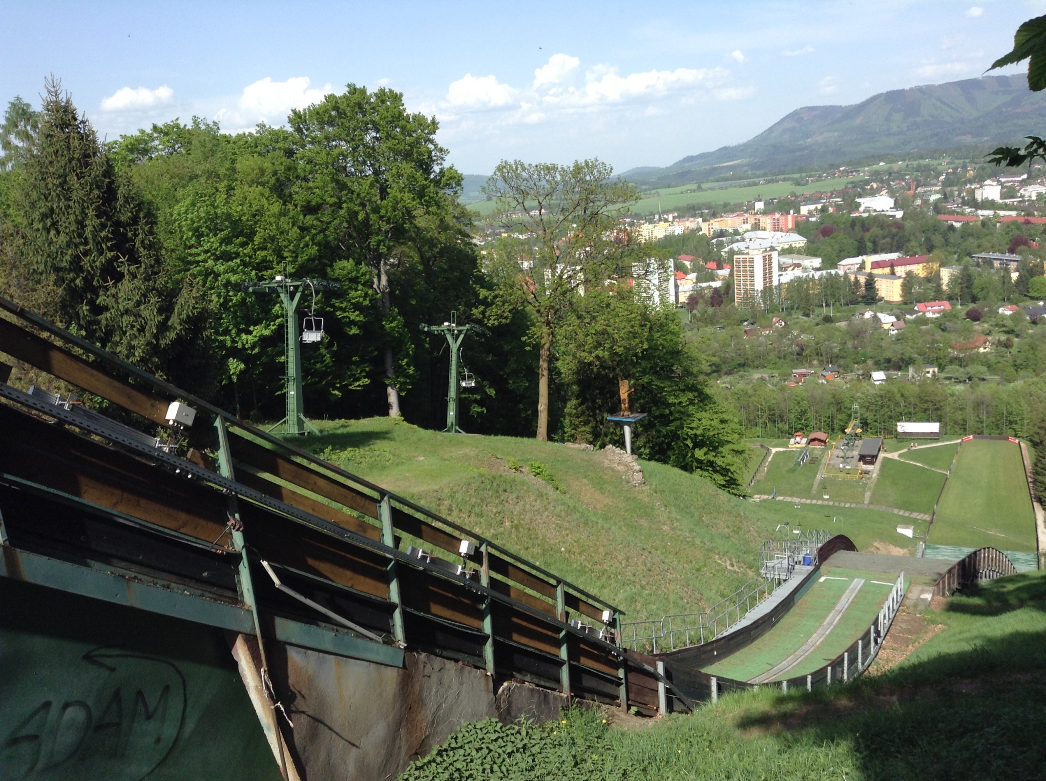 Lanovka nahoru na můstky nejela, tak jsme mohli nahoru pěšky nebo autem. Parkovat se dá nahoře u skokanských můstků zdarma. Lávka v korunách stromů je součástí naučné stezky /zdarma/. Penízky jsme utratili jen za jídlo, pití a motokáry![]()