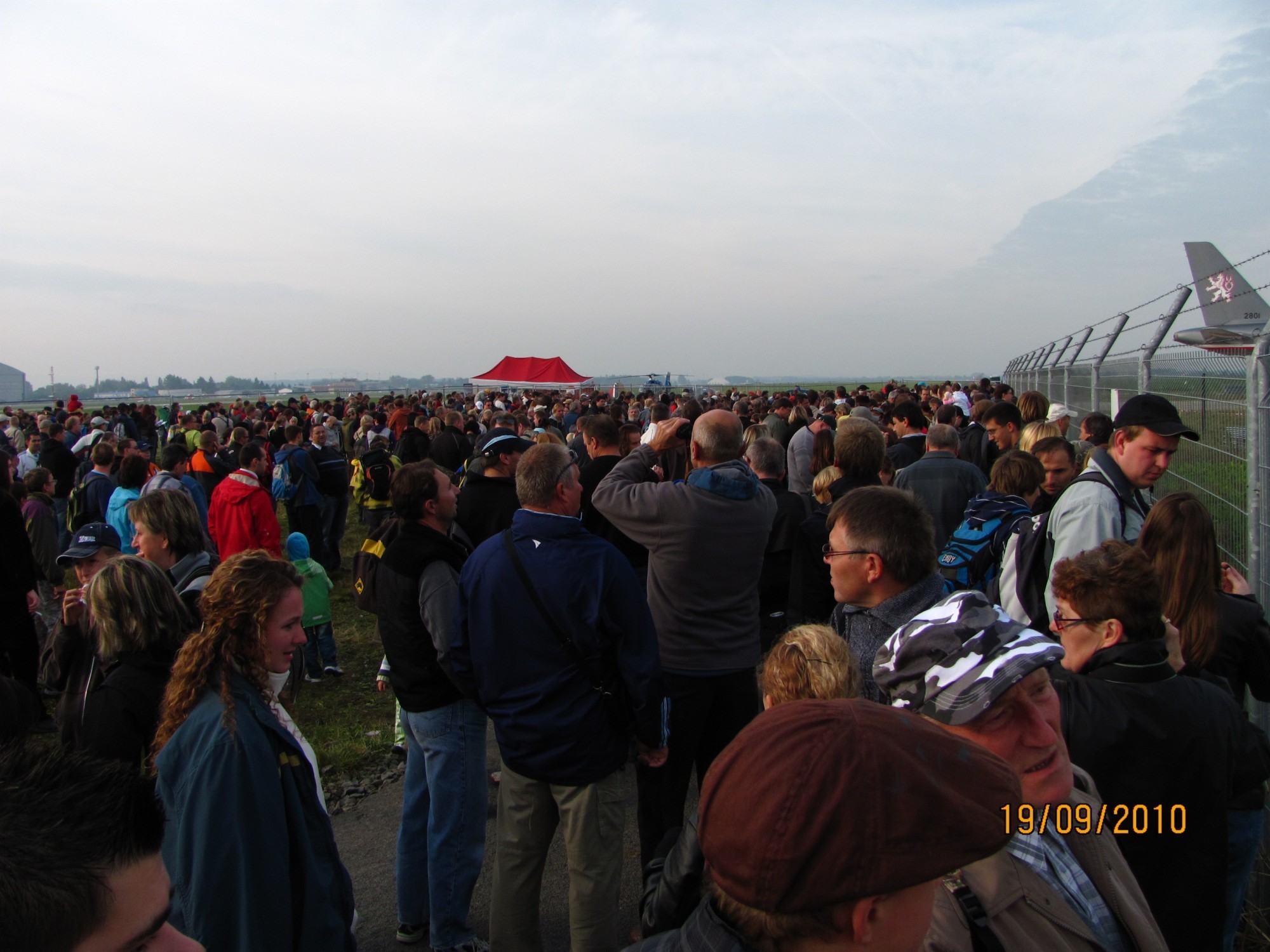 Po katastrofickém zpravodajství ze Dnů NATO na Tv Nova jsme další den po sedmé ráno vyrazili. V půl deváté jsme bez problémů byli na parkovišti a o čtvrt hodiny později před bránou se stovkami dalších nedočkavců, kteří jsme ještě v chladu vybalovali snídaně. Hned za bránou jsme obdivovali bombardér B-52, který se celý nevejde na jednu fotografii.