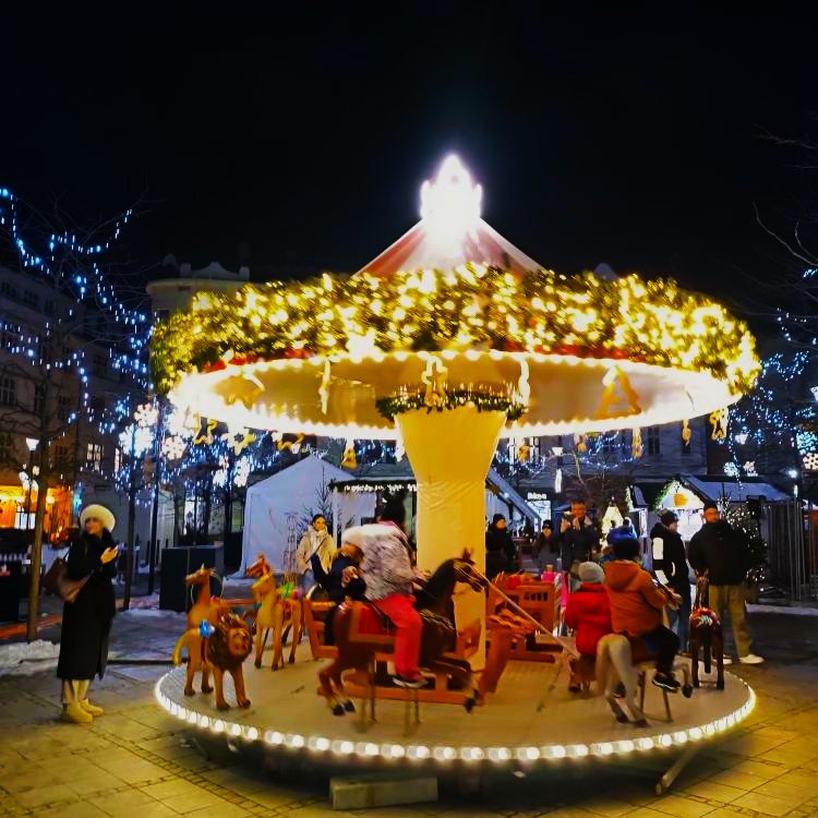 Vánoční atmosféra na Kuřím rynku s karuselem a dekoracemi