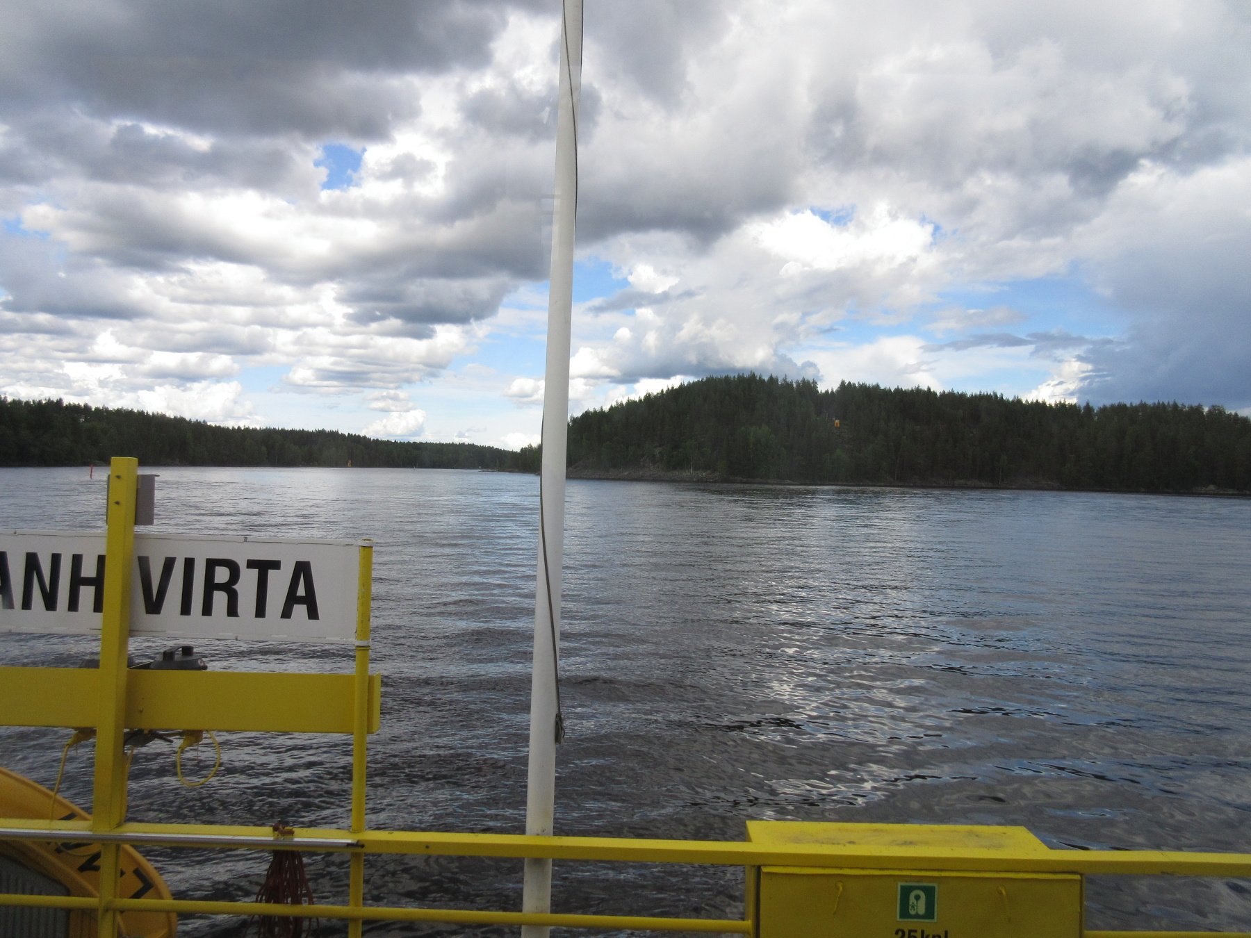 Při cestě do parku od jihu je jedna zvláštnost. Na trase z Enonkoski najednou chybí kus silnice a přes jezero se musí trajektem. Dokonce i dopravní značka varuje před pádem do jezera.